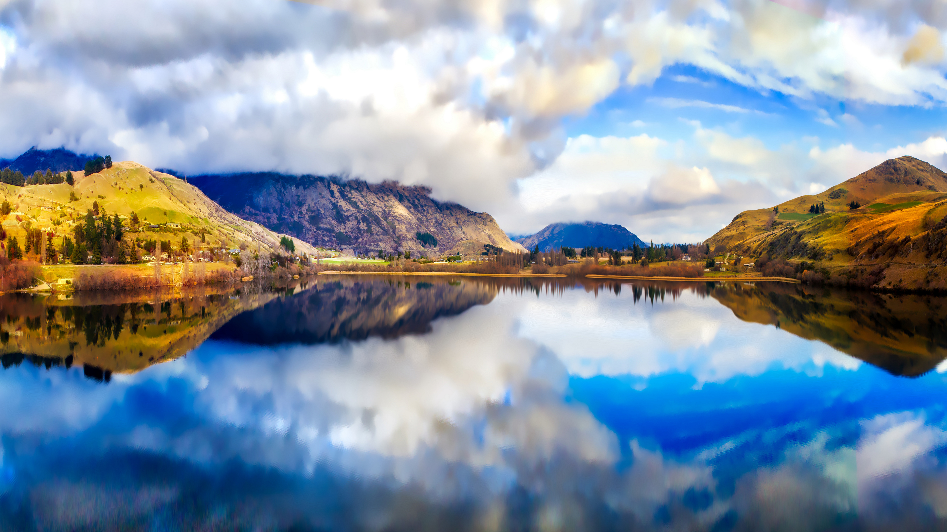 - Home > Anime Wallpaper >Landscape New Zealand Nature Water Reflection Mountain Clouds Sky Computer Wallpaper 4K Wallpaper