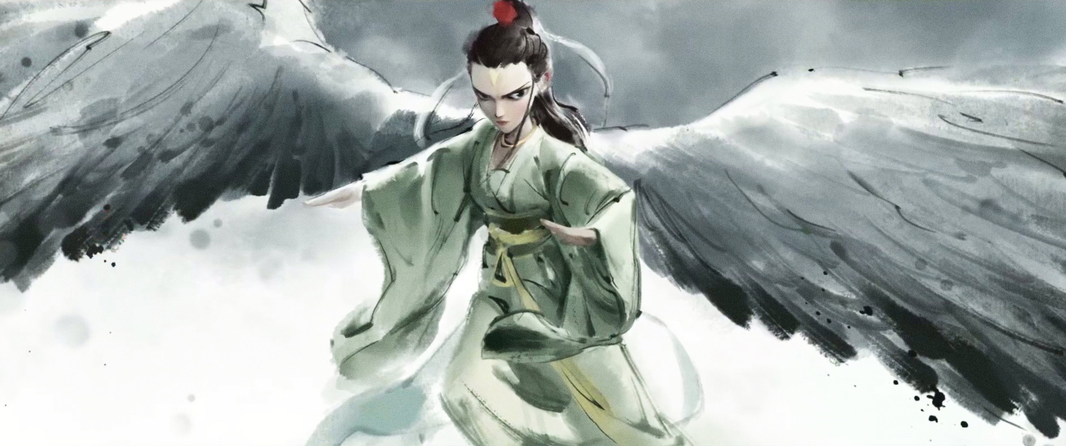 - Home > Cartoon Wallpaper >Free download Nezha Devil Child Trouble Sea Crane Child Ink Painting Hairfish Screen Wallpaper 2K Wallpaper