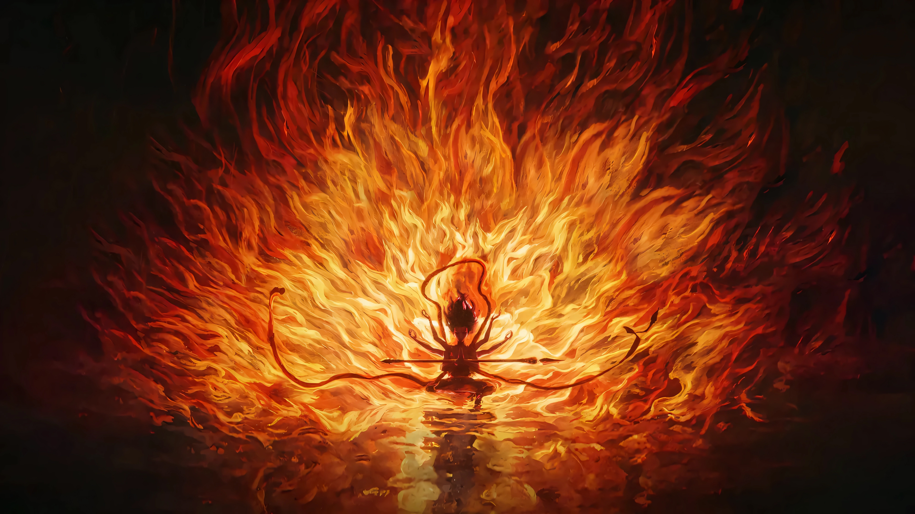 Nezha Opening Fire Lotus HD 4K Computer Wallpaper Devil Child Trouble Sea 4K Wallpaper