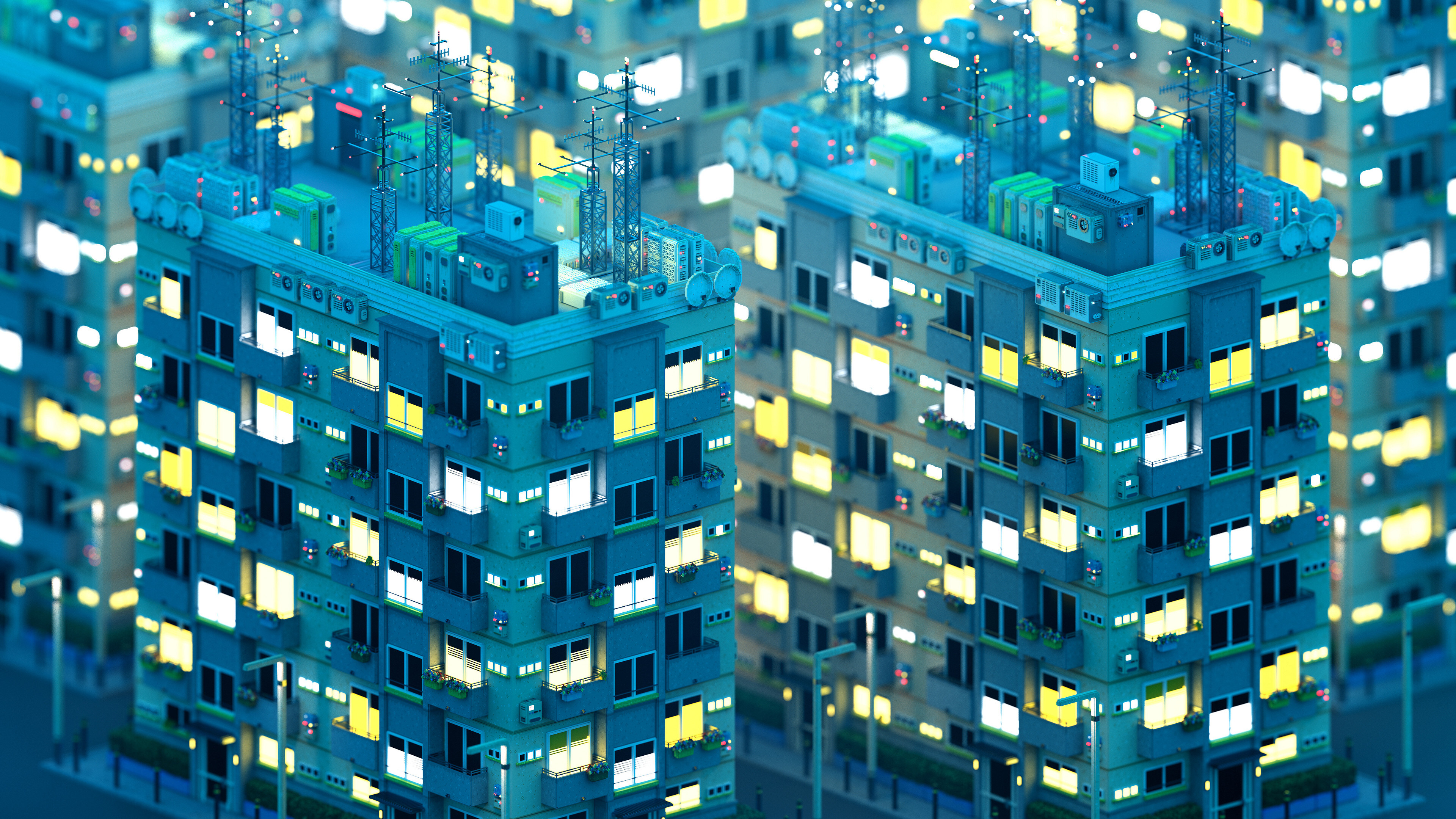 AI Art Art Apartment Block Blue City Building Night View Computer Wallpaper 4K Wallpaper