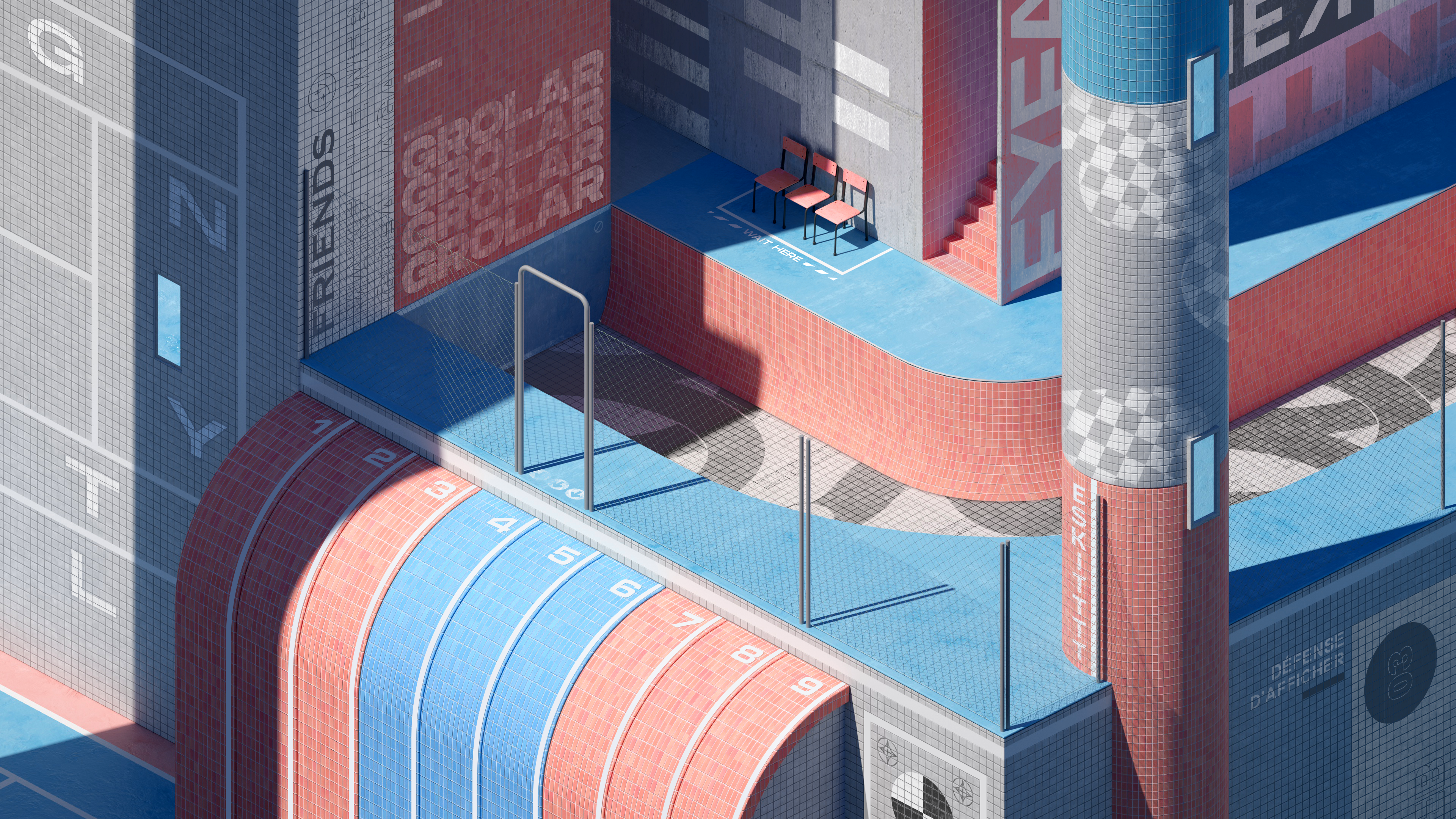 AI Art Environment Playground Outdoor Illustration Architecture Swimming Pool 4K Wallpaper