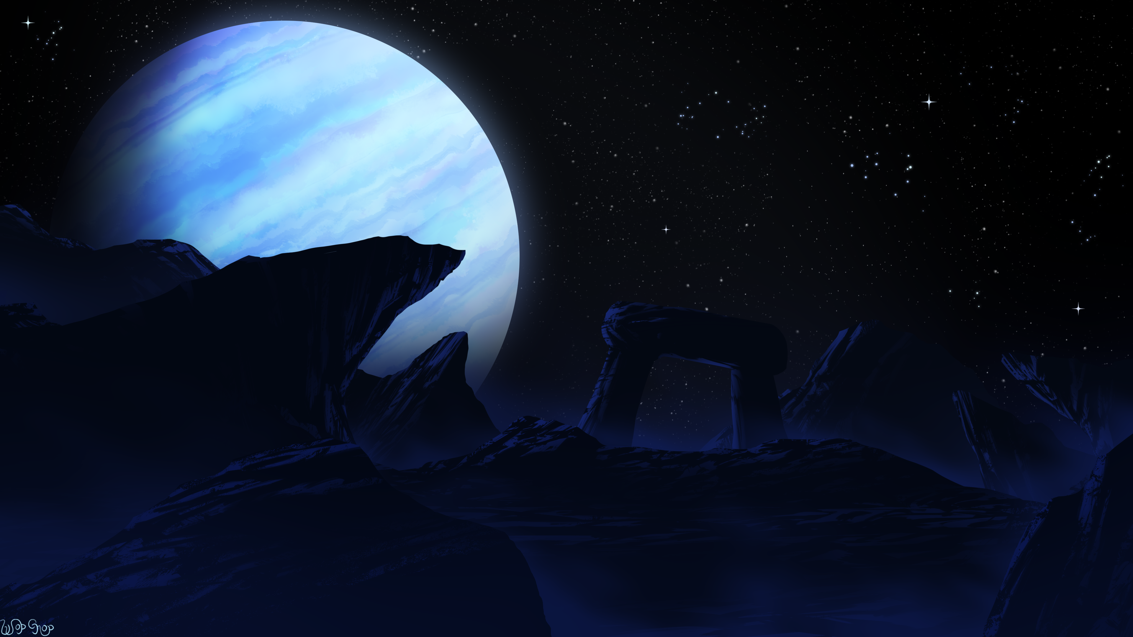 - AI Art Illustration Landscape Nature Dark Night Planet Stars Rock Formation Environment Sky Computer Wallpaper 4K Wallpaper