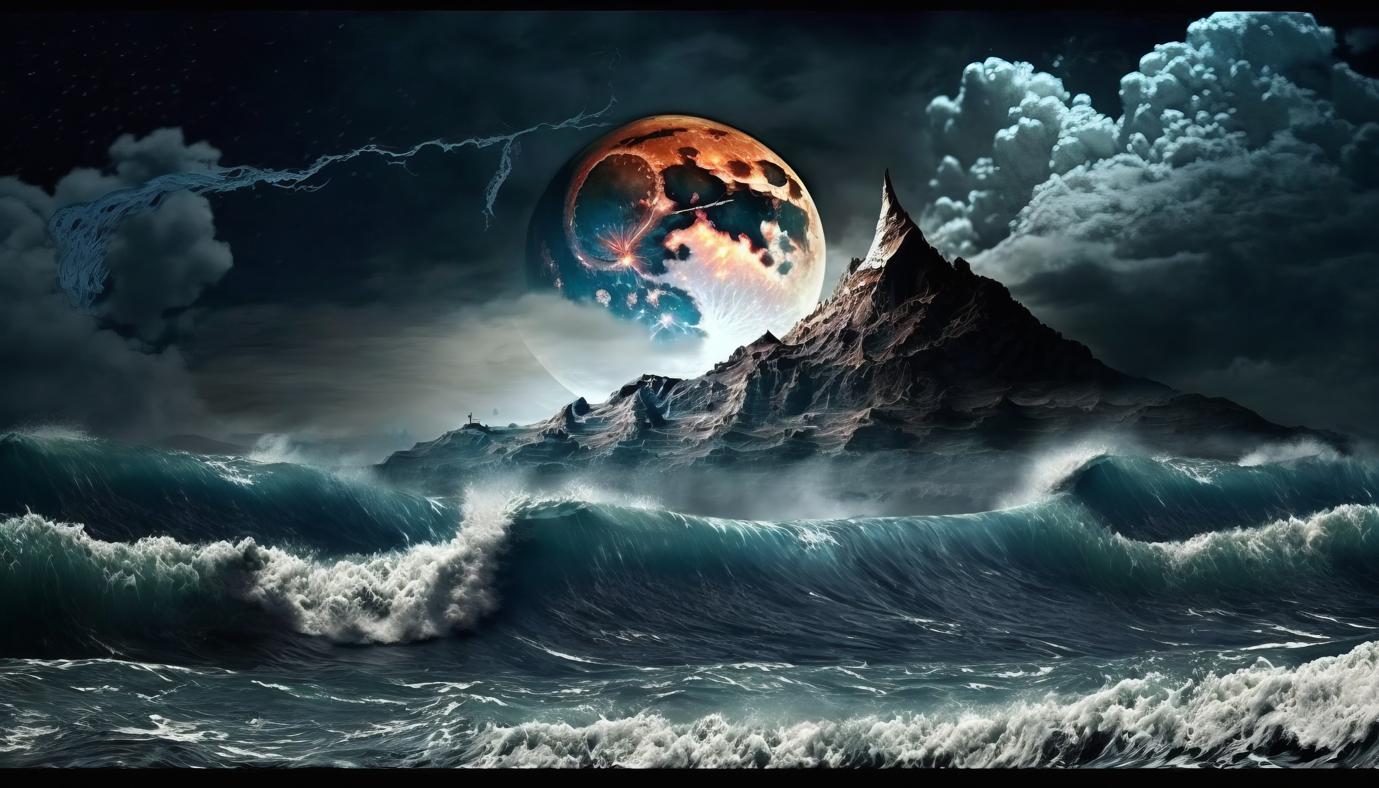 - Home > Landscape Wallpaper >Free download AI Art Illustration Moon Wave Sea Mountain Cloud Water Computer Wallpaper 4K Wallpaper