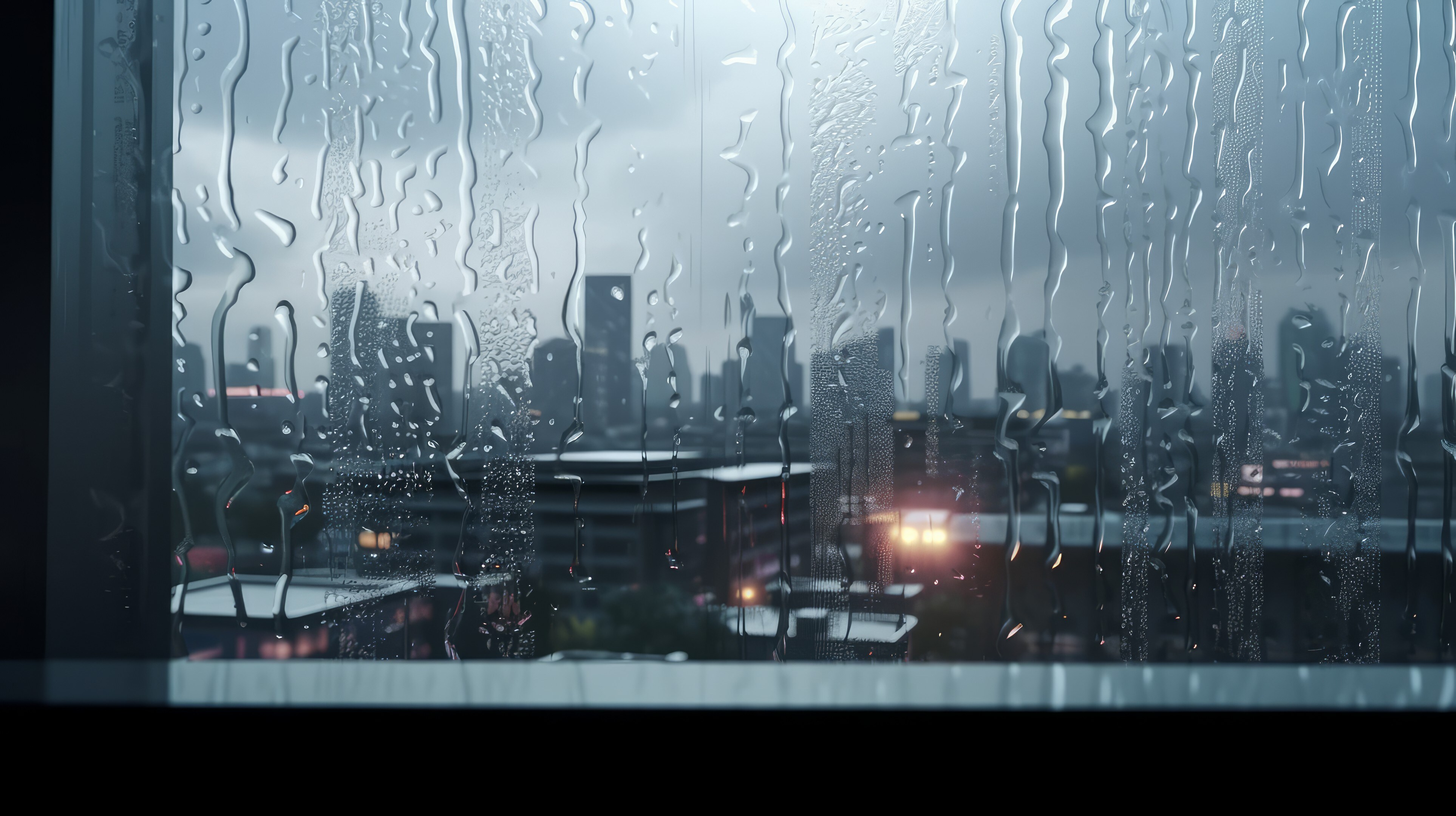 • City Rain Window Architecture Art 4K Wallpaper