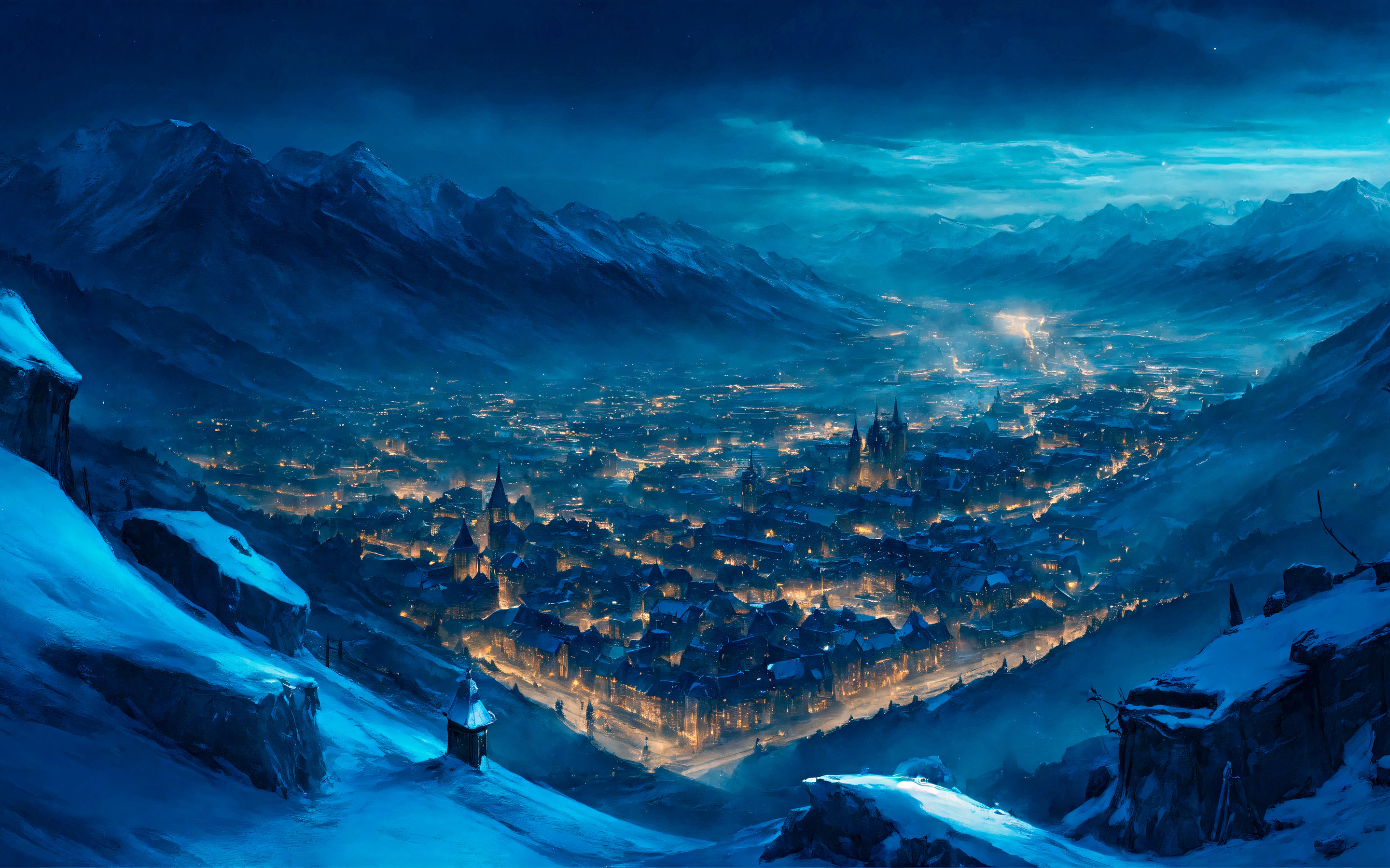 • City of Valley Lights Scenic Wallpaper 2K Wallpaper