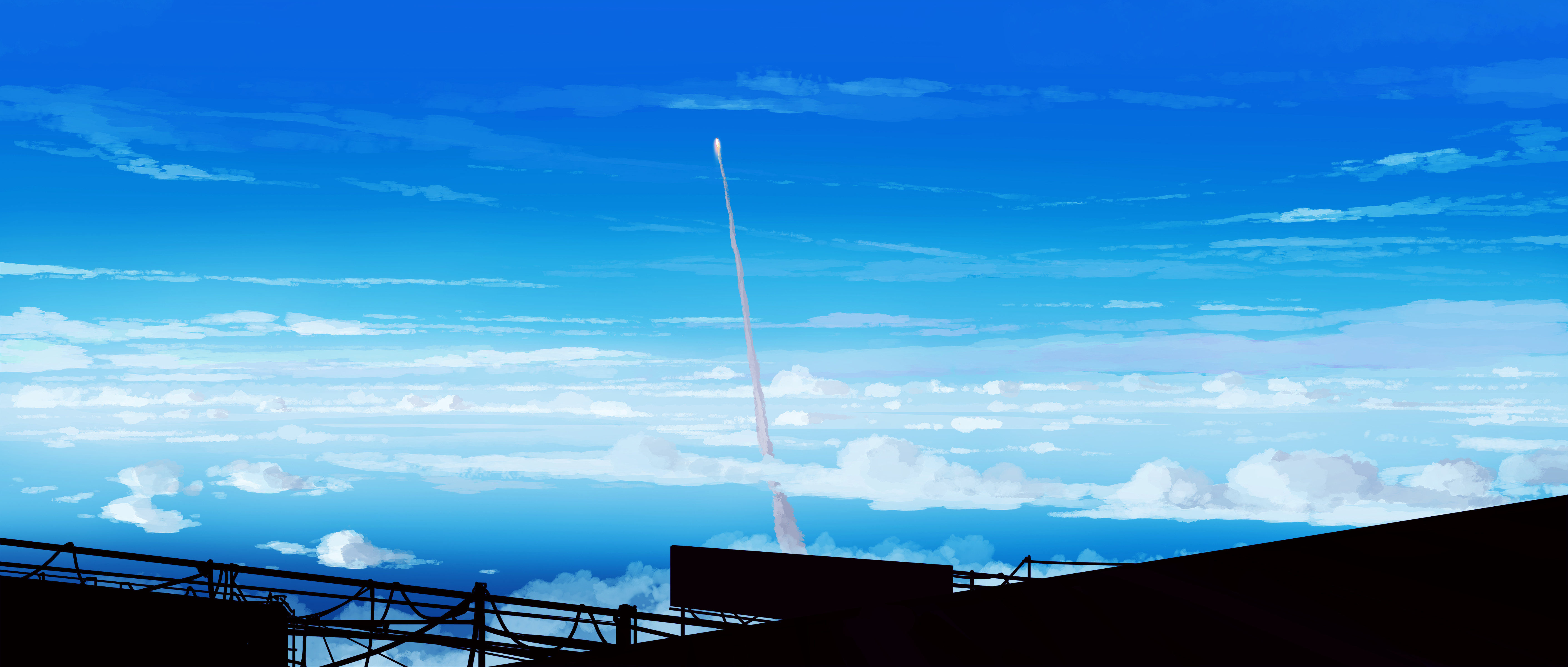 Elegant AI Art Illustration Sketch Cloud Rocket Launch 4K Wallpaper