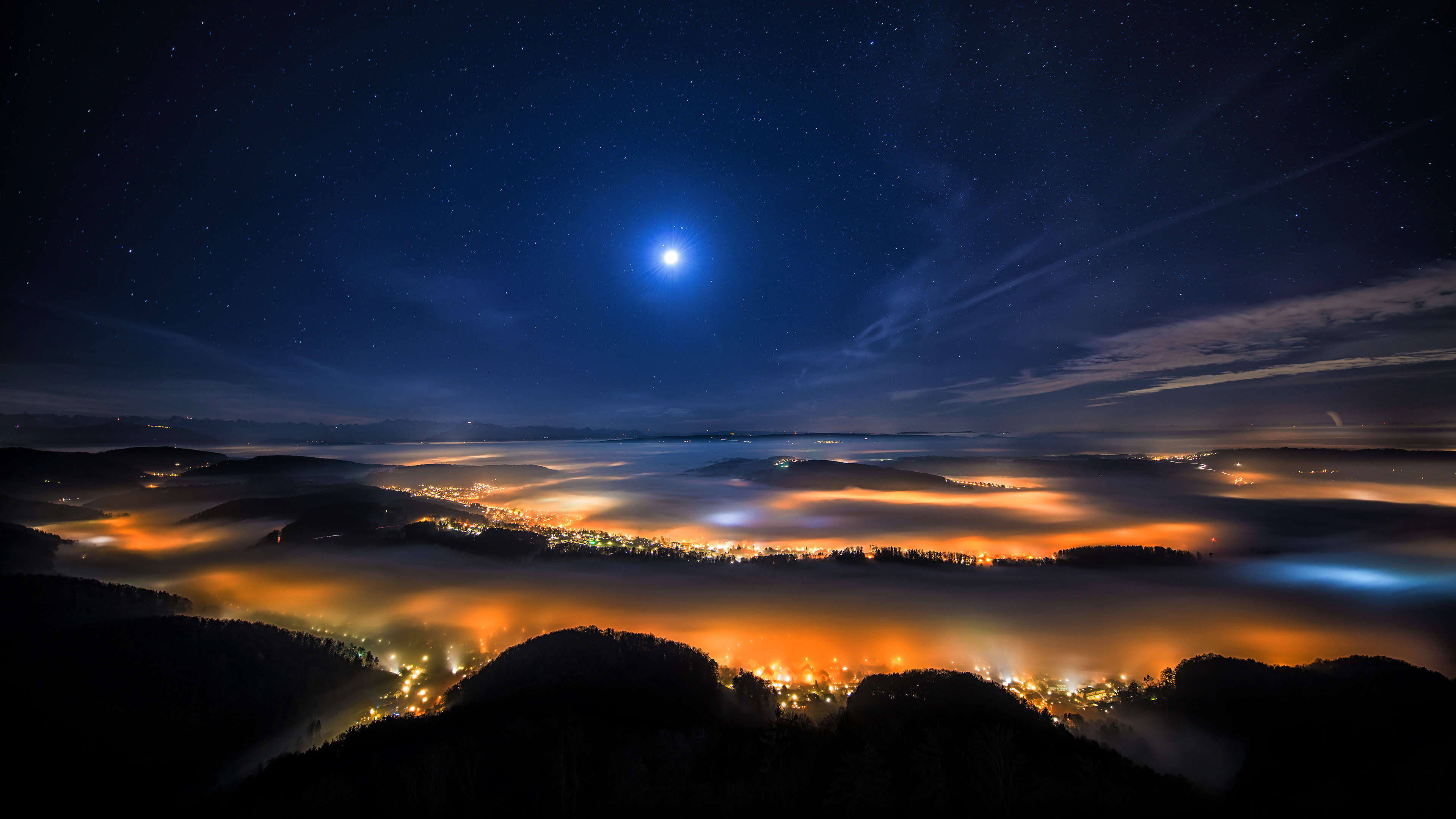 Free download Moon Ocean Night Starry Sky Space Stars Computer Wallpaper 4K Wallpaper...