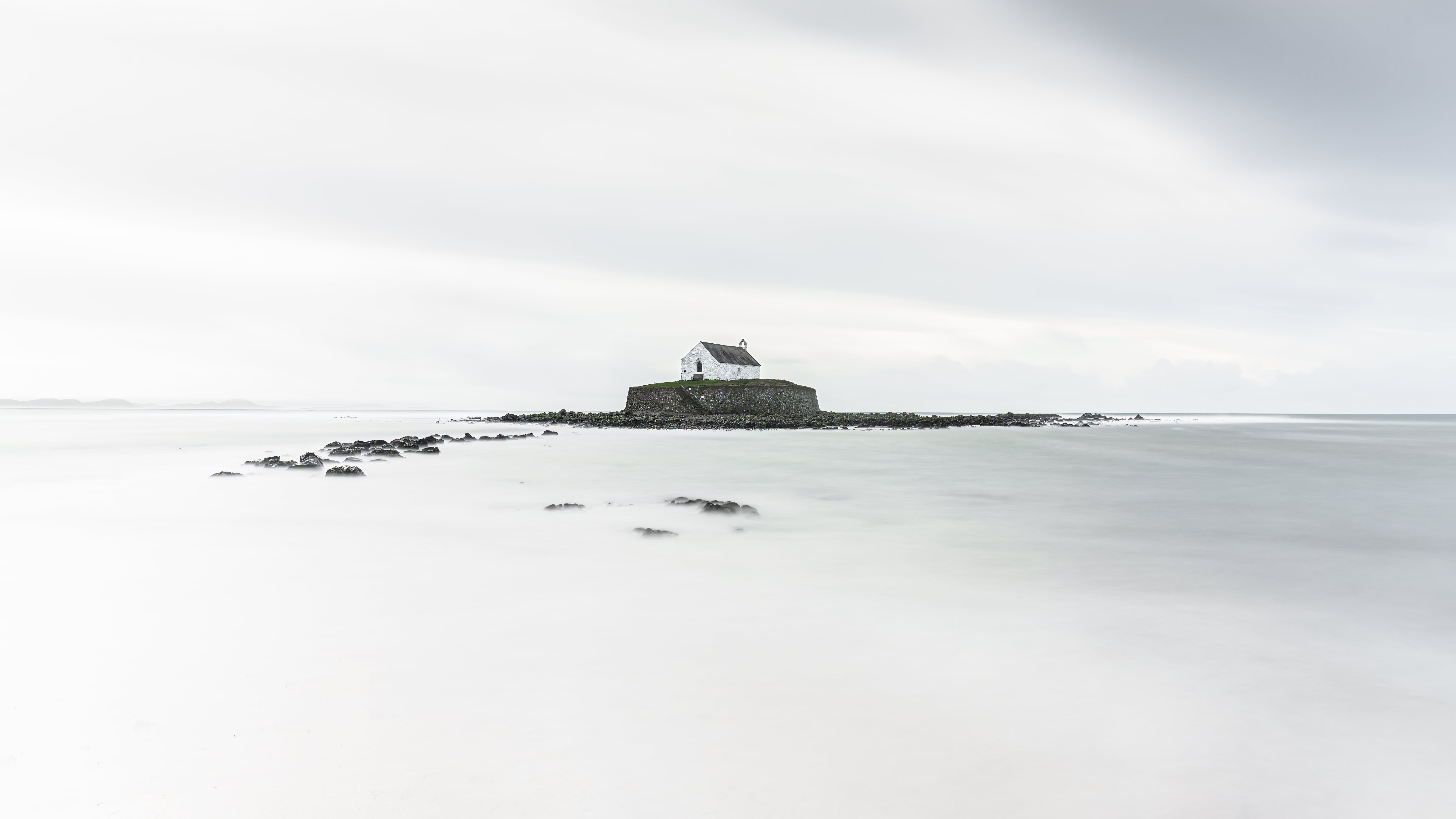 - Landscape Rocks Water Clouds Bench Fountain Church 4K Wallpaper