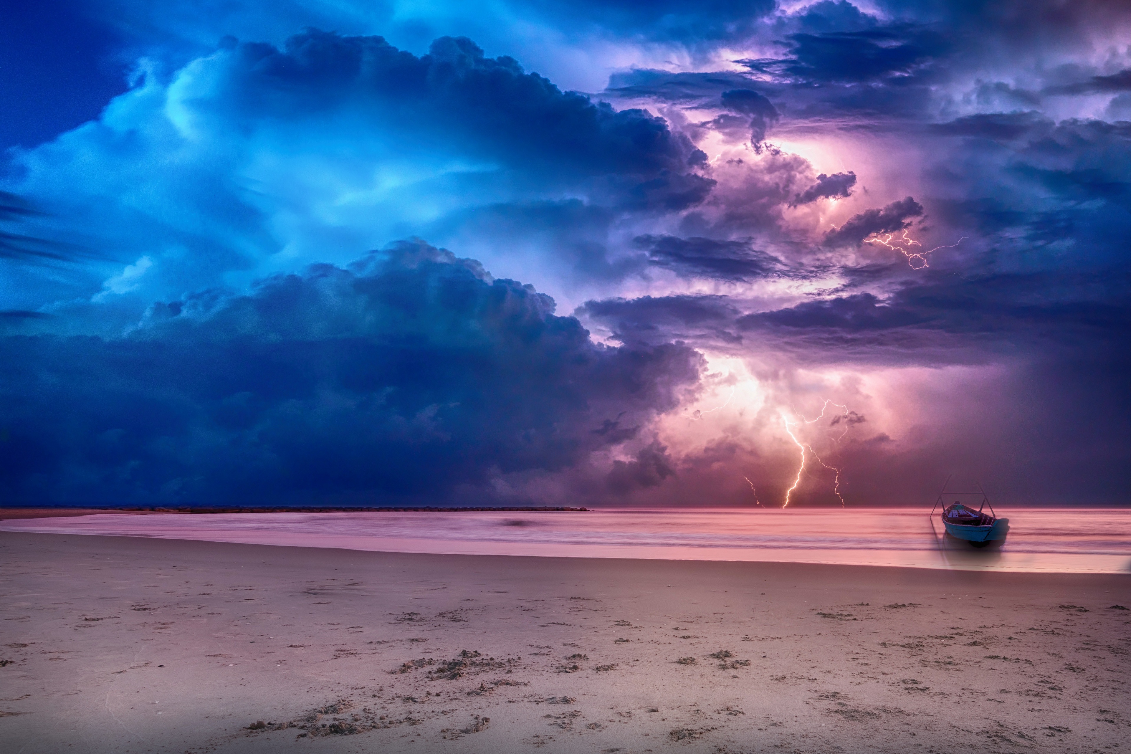 - Home > Landscape Wallpaper >Free download Lightning Nature Sea Beach Boat Sky Cloud Storm Computer Wallpaper 4K Wallpaper