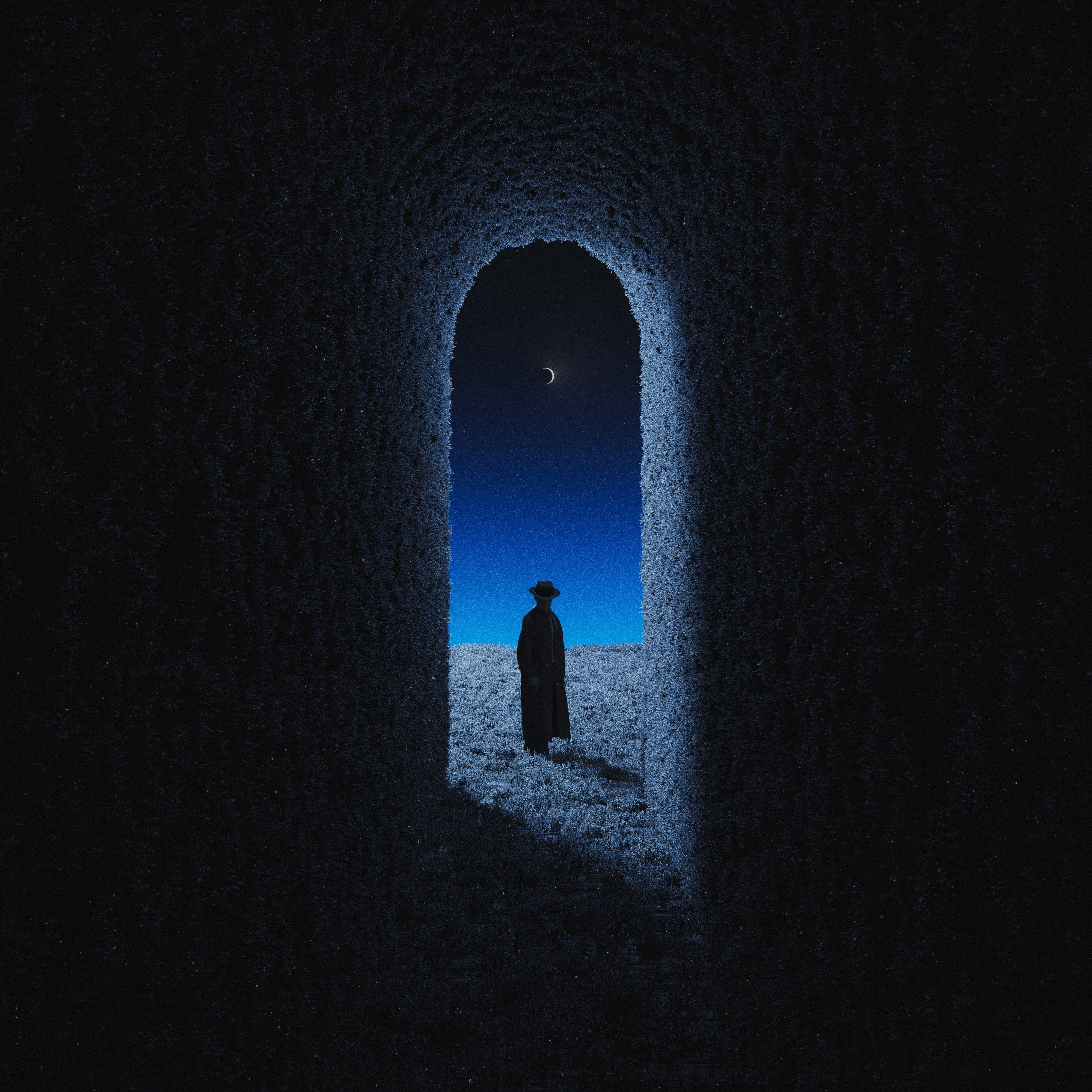 - Lonely Blue Dark Hedge Moon Low Light Digital Art Mobile Wallpaper 4K Wallpaper