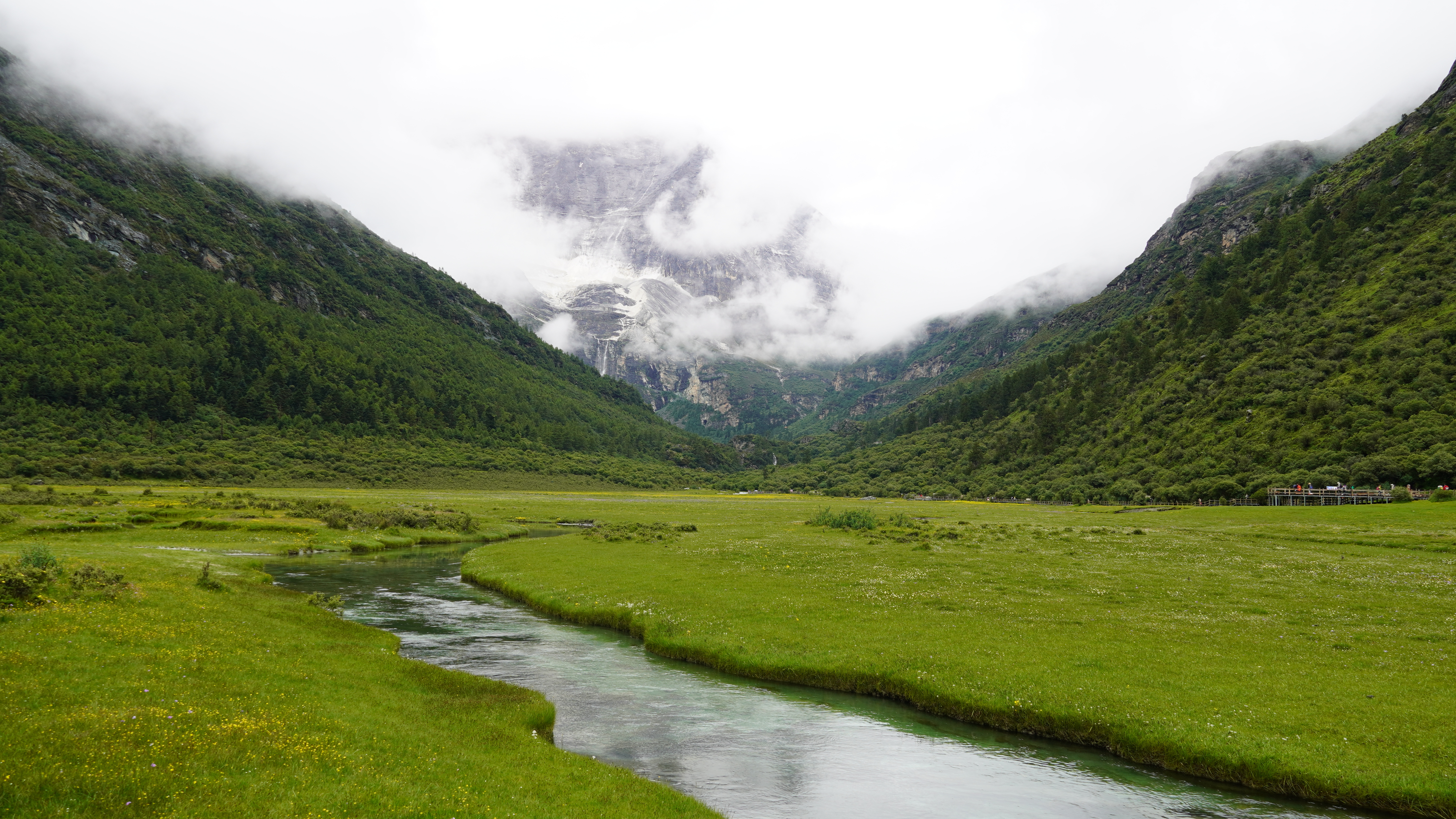 - Mountain view nature water river cloud grass mountain 4K wallpaper