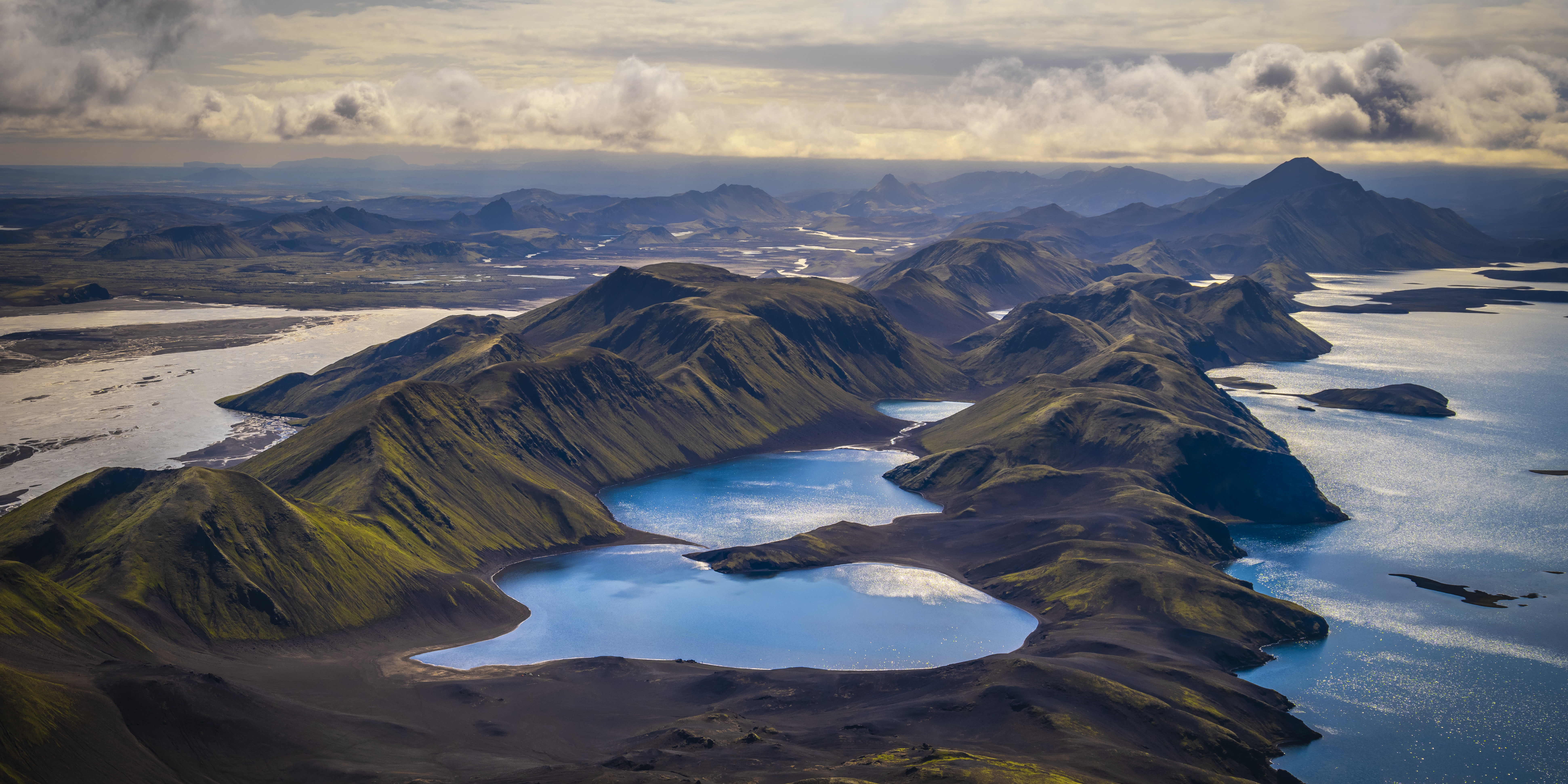 Natural landscape Mountains Hills Water Clouds Sky Vista 8K Wallpaper