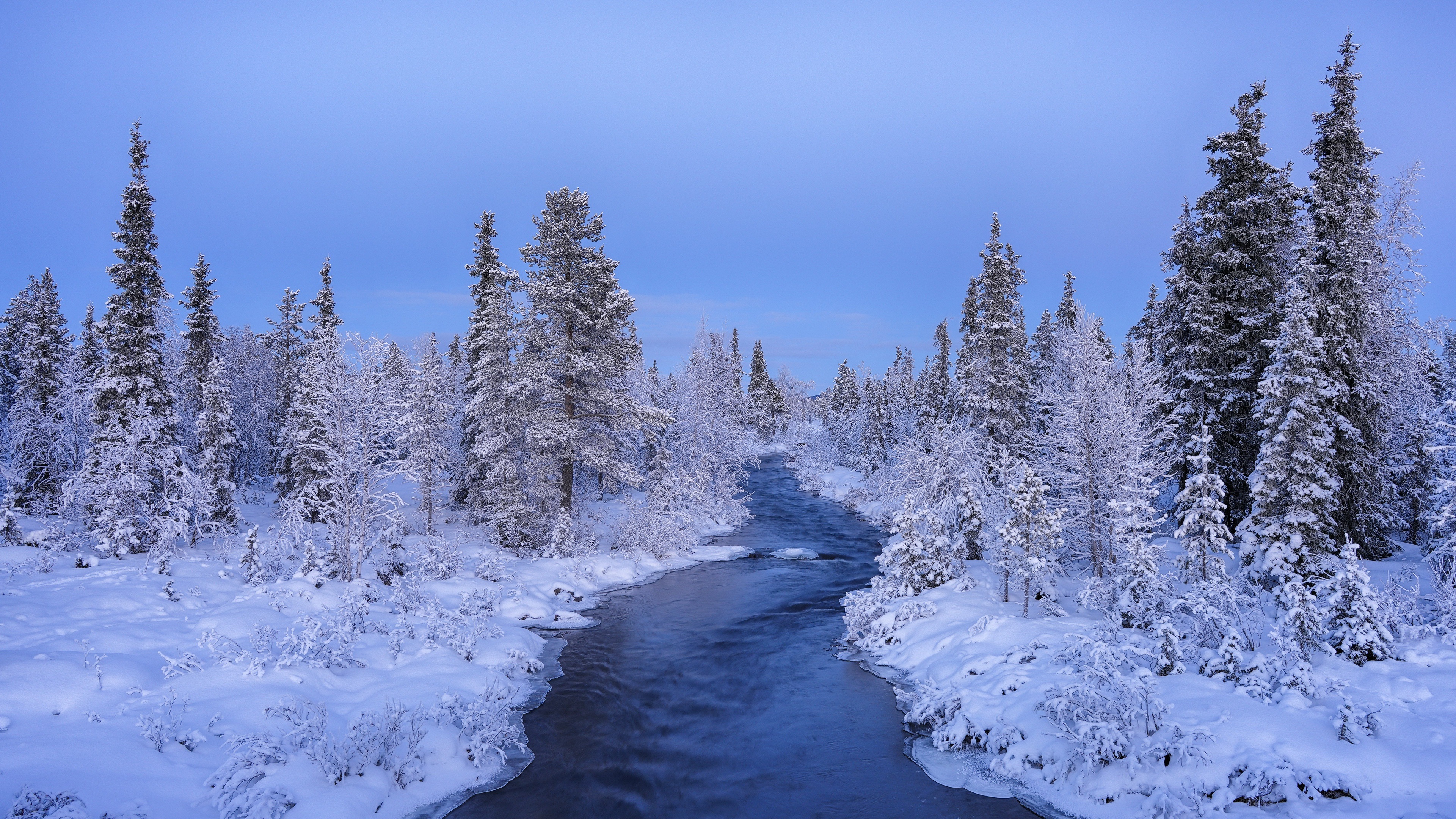 Nature Creek Winter Cold Outdoor Trees Water Snow Computer Wallpaper 4K Wallpaper