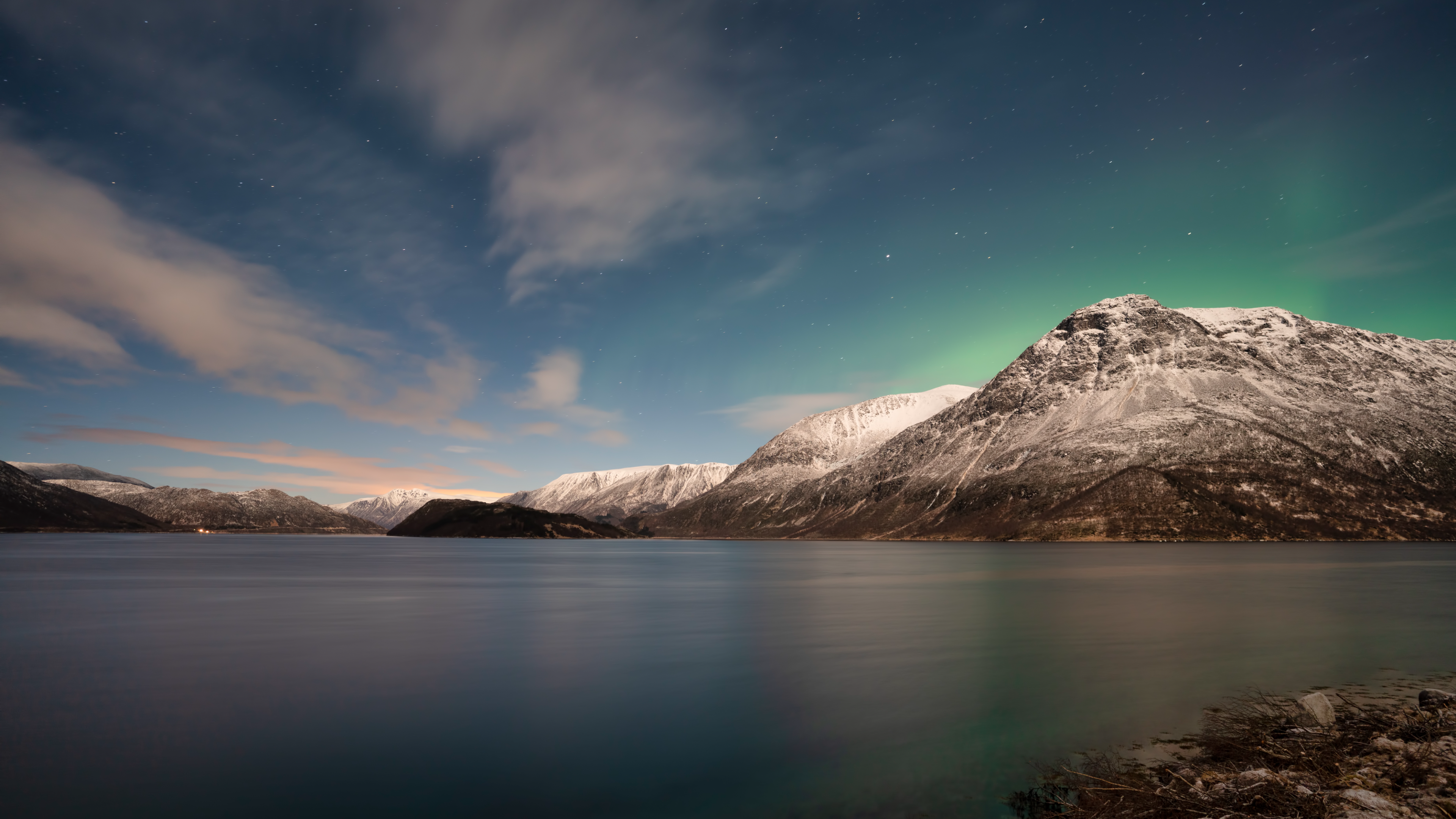 Nature Landscape Clouds Sky Mountains Rocks Water River Aurora Norway Computer Wallpaper 4K Wallpaper