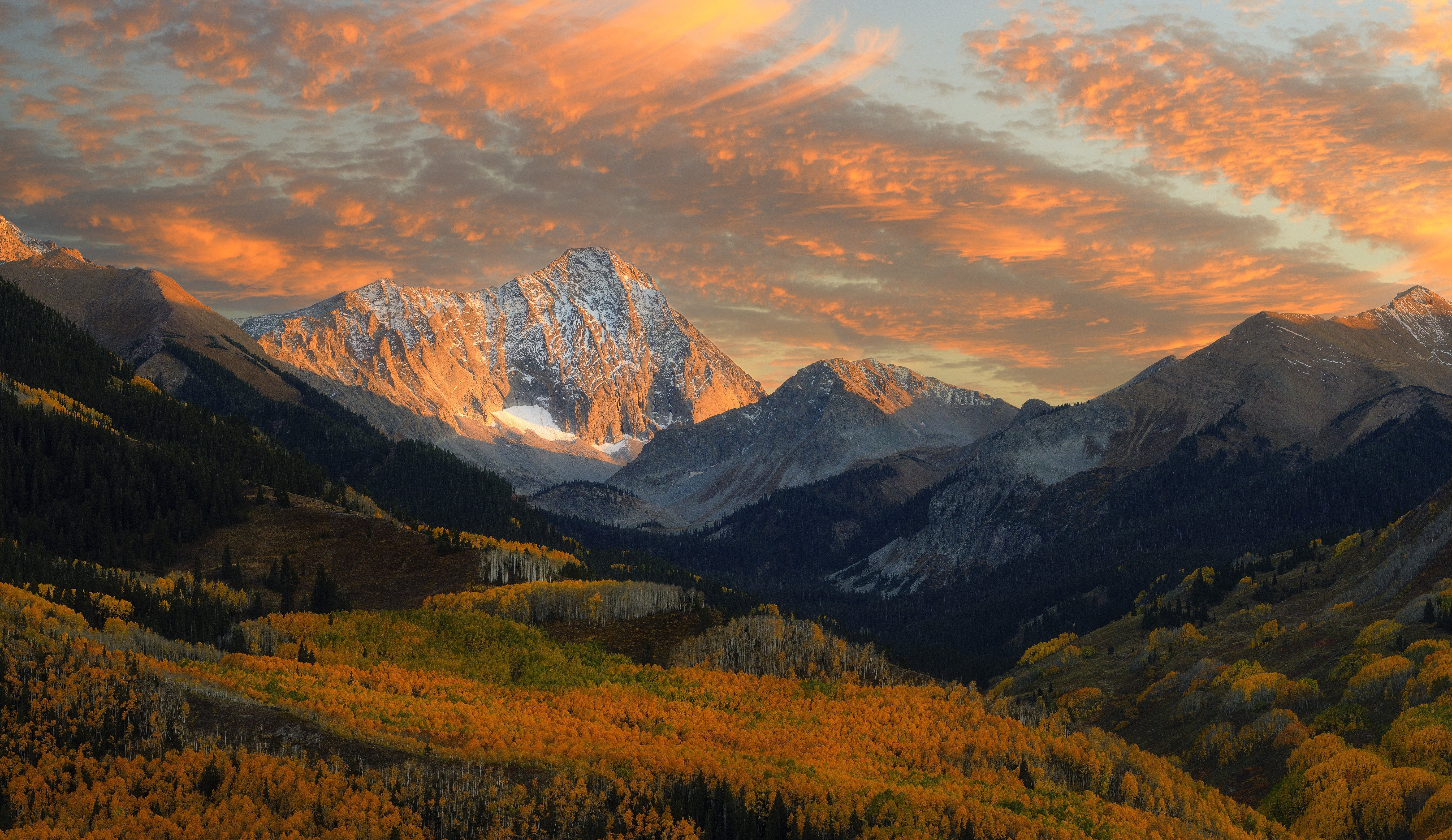 Nature Landscape Clouds Sky Trees Forest Mountains Snow Vision Autumn Sunset 4K Wallpaper