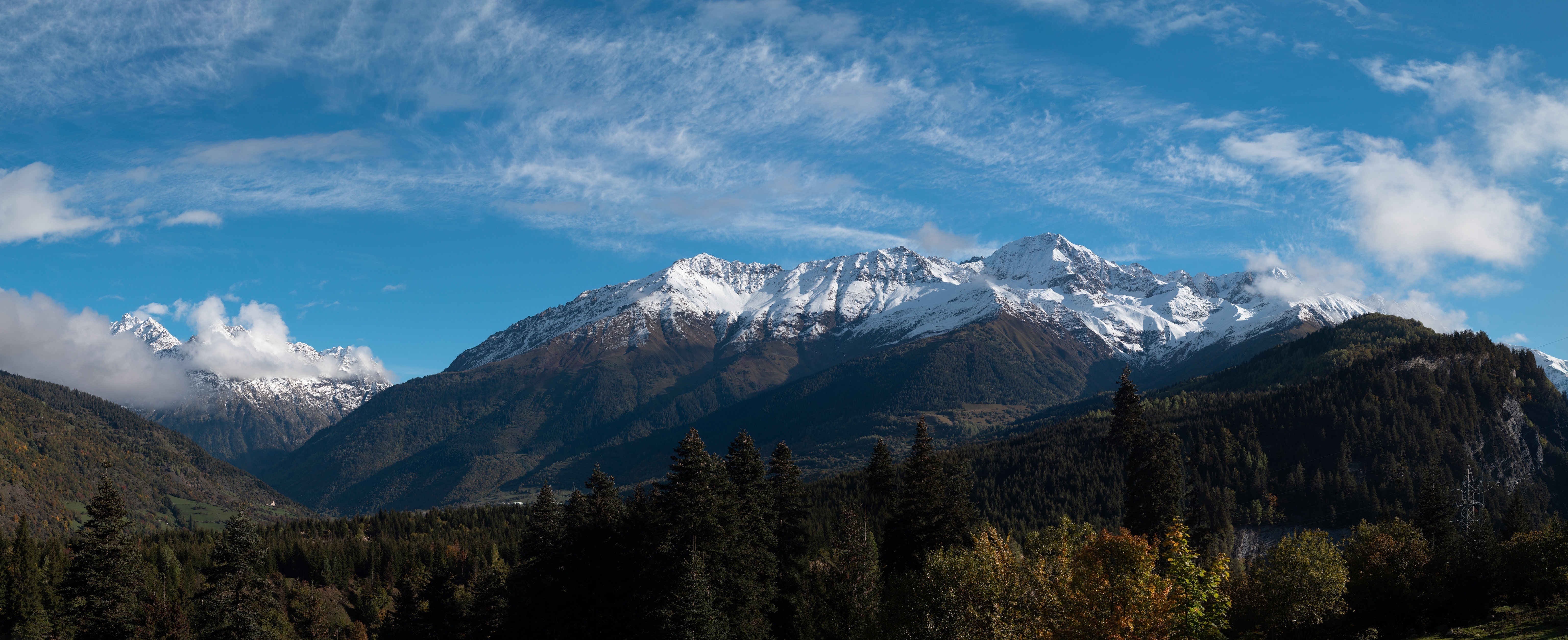 Nature Landscape Mountains Snow Peak Clouds Sky Snow Trees 4K Wallpaper