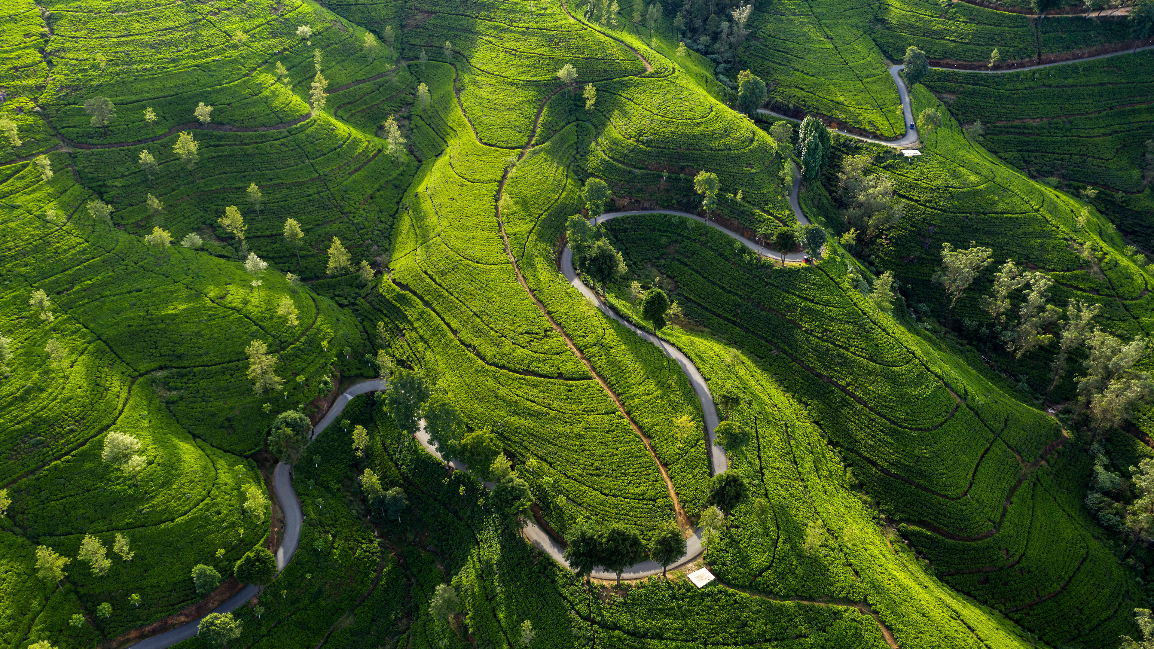 Nature Landscape Road Trees Farm Field Tea Trees 4K Wallpaper