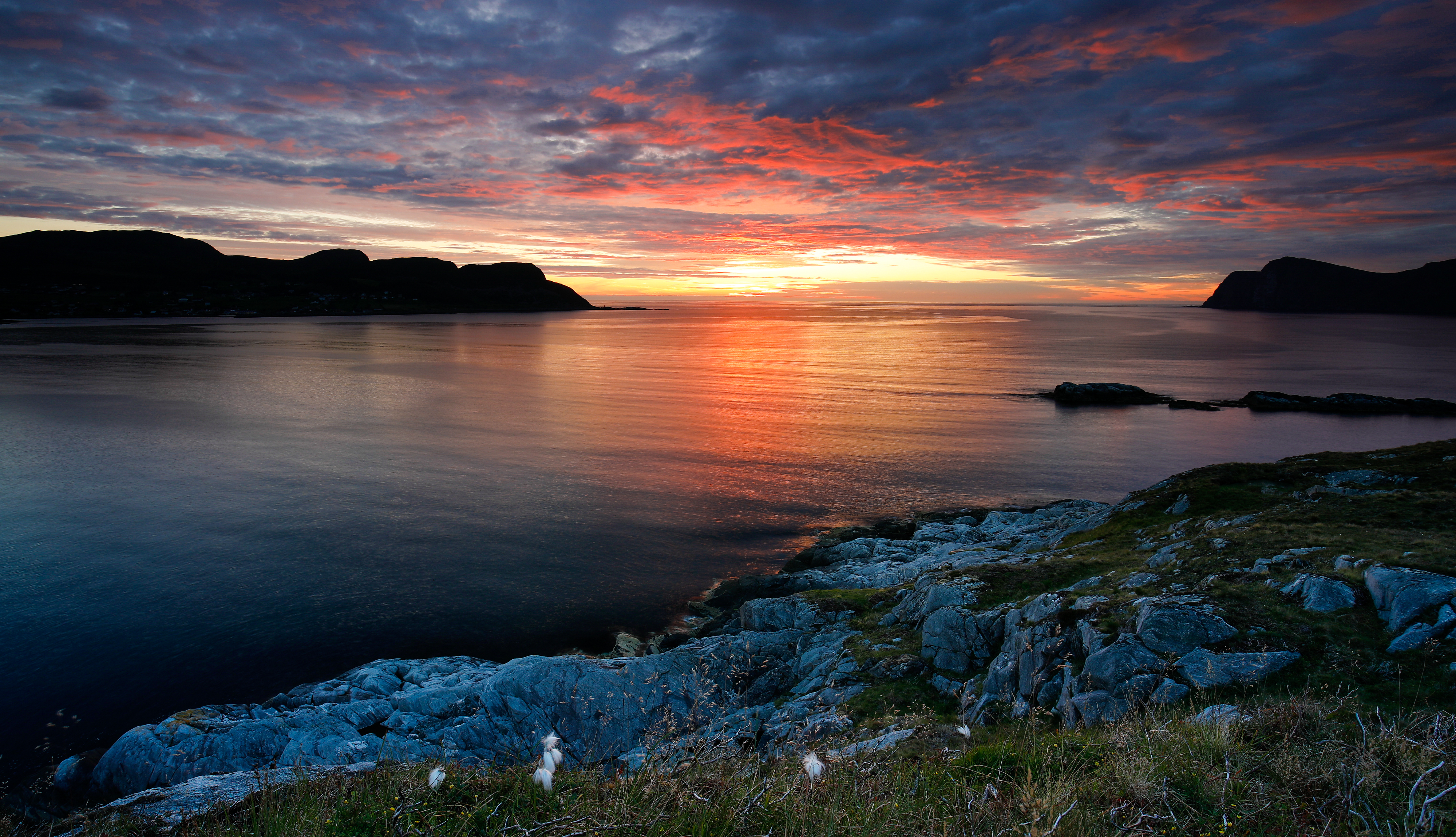 - Nature Landscape Sky Cloud Rock Grass Water Sea Mountain Horizon Red Clouds Vision Low Light 4K Wallpaper