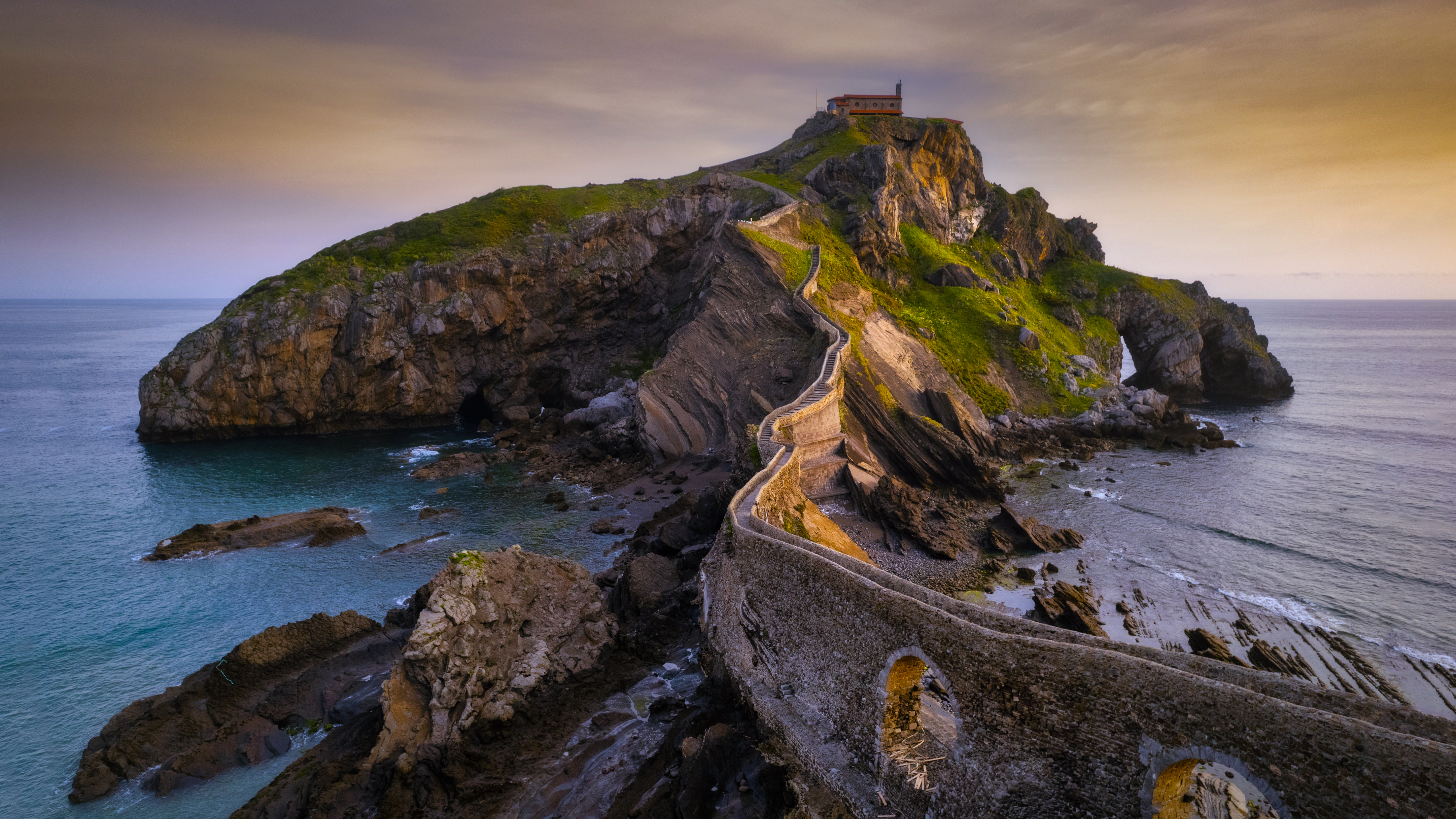Nature Landscape Water Cloud Sky Coast Rock Island Grass 4K Wallpaper
