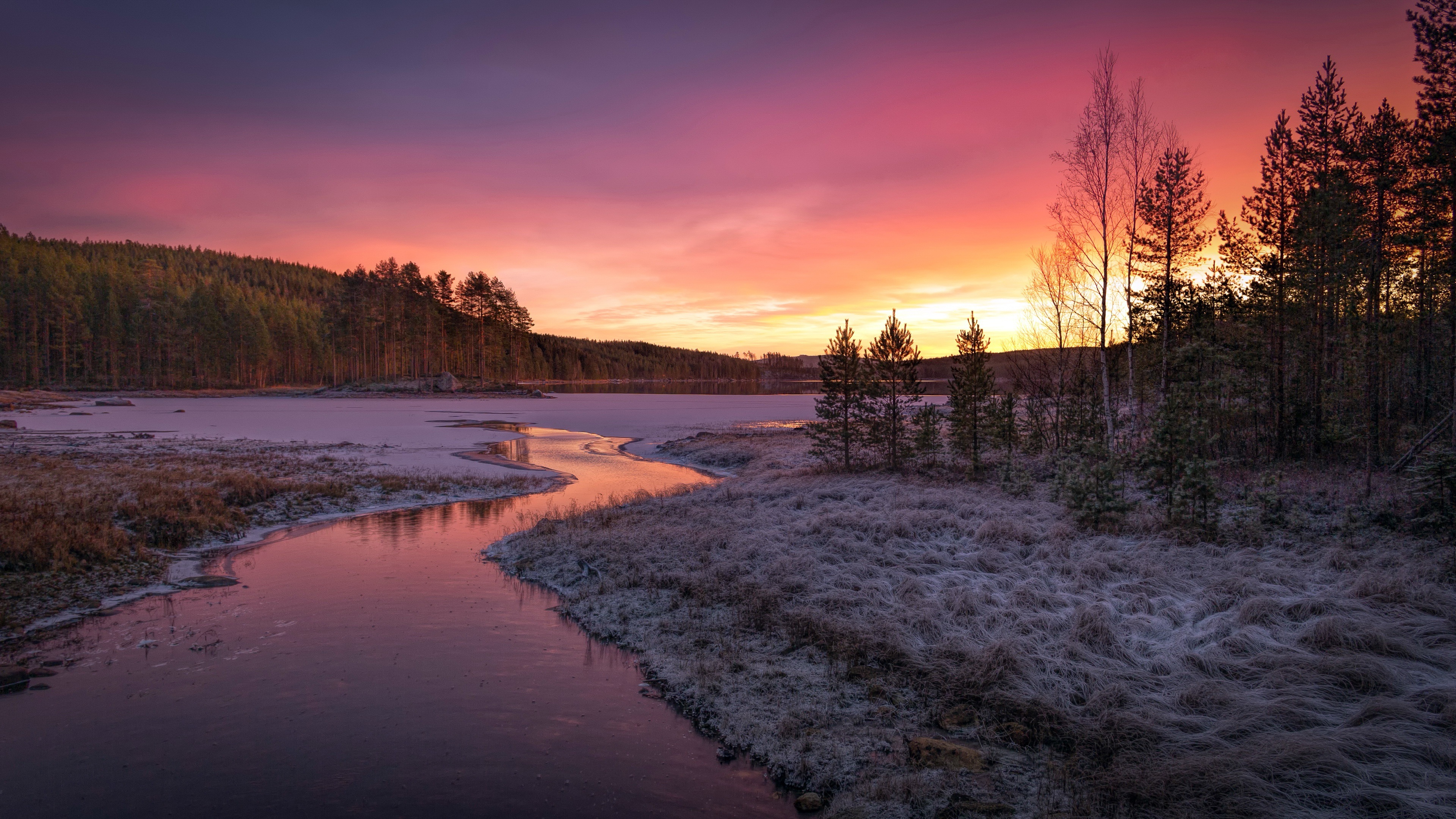 - Nature Outdoor Cold Ice Sky Sunset Winter 4K Wallpaper