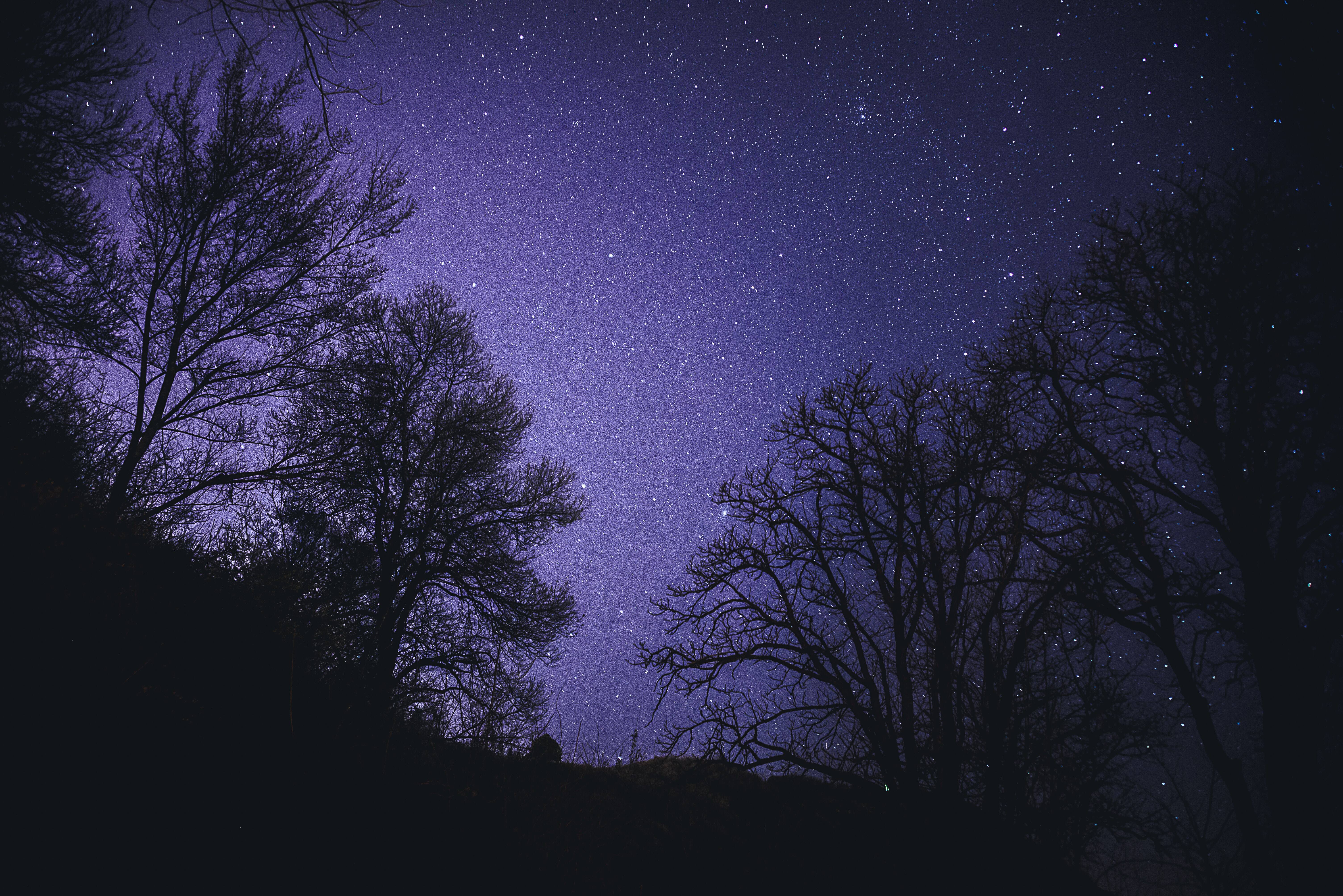 - Home > Landscape Wallpaper >Free download Night sky Stars Starry Night Trees Silhouette Dark Purple Nature Landscape Low Light 4K Wallpaper