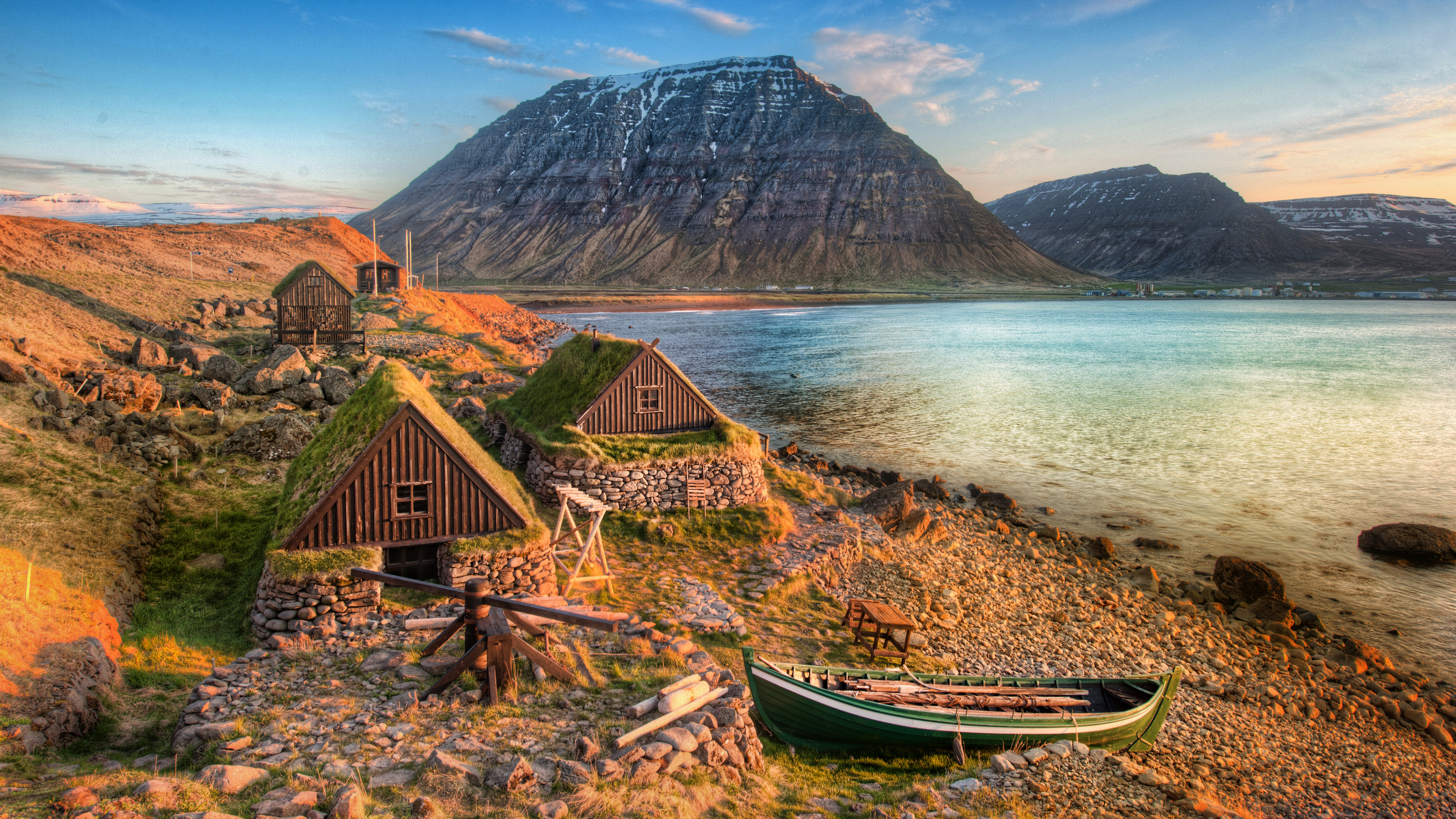 Free download Landscape Mountains Plants Lagoon Water Houses Trees Reflection Computer Wallpaper 4K Wallpaper...