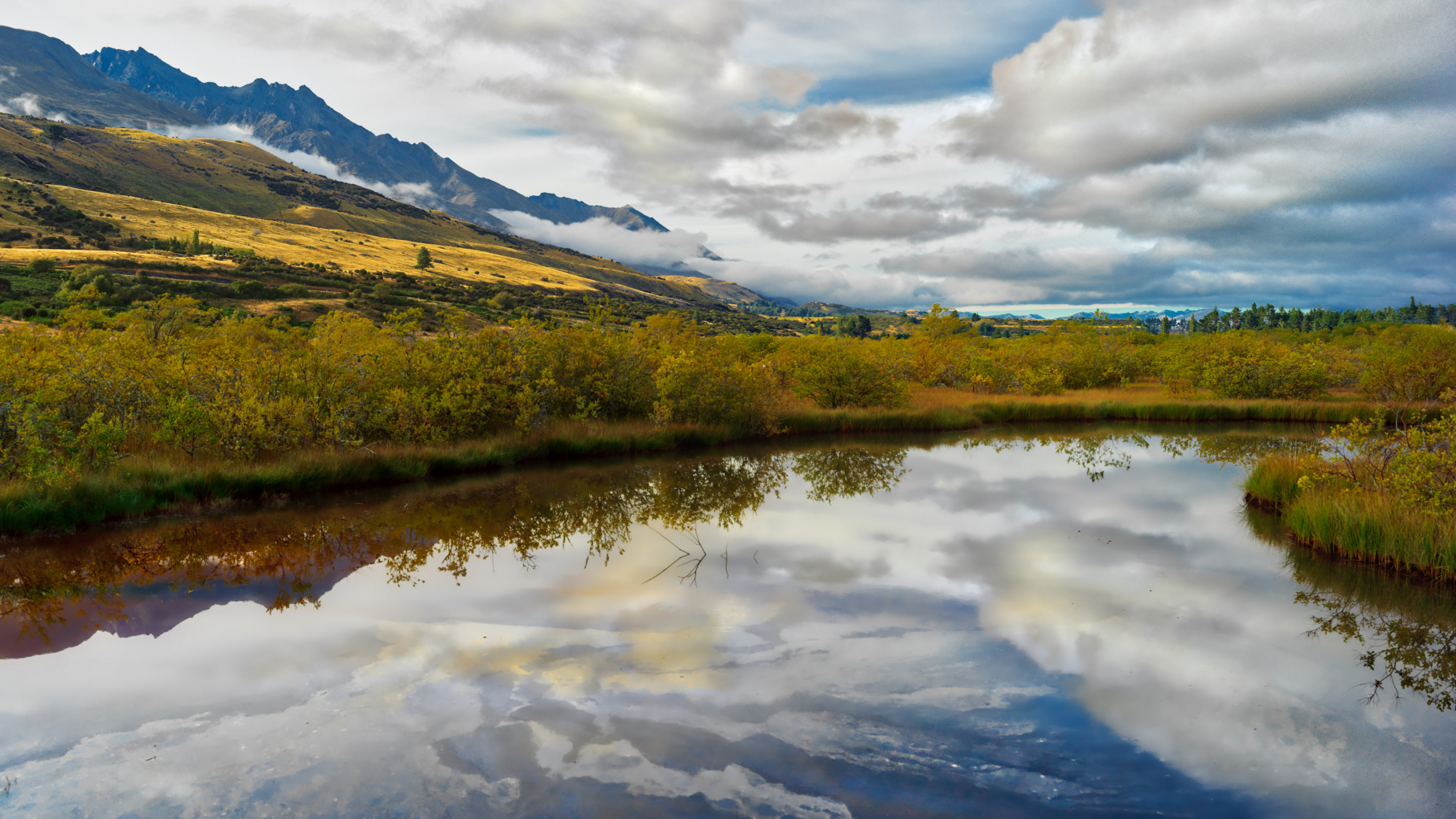 • Photography Landscape Nature Outdoors Mountains Water Hills Reflection Coast Trees Field Plants Sky Clouds Computer Wallpaper 4K Wallpaper