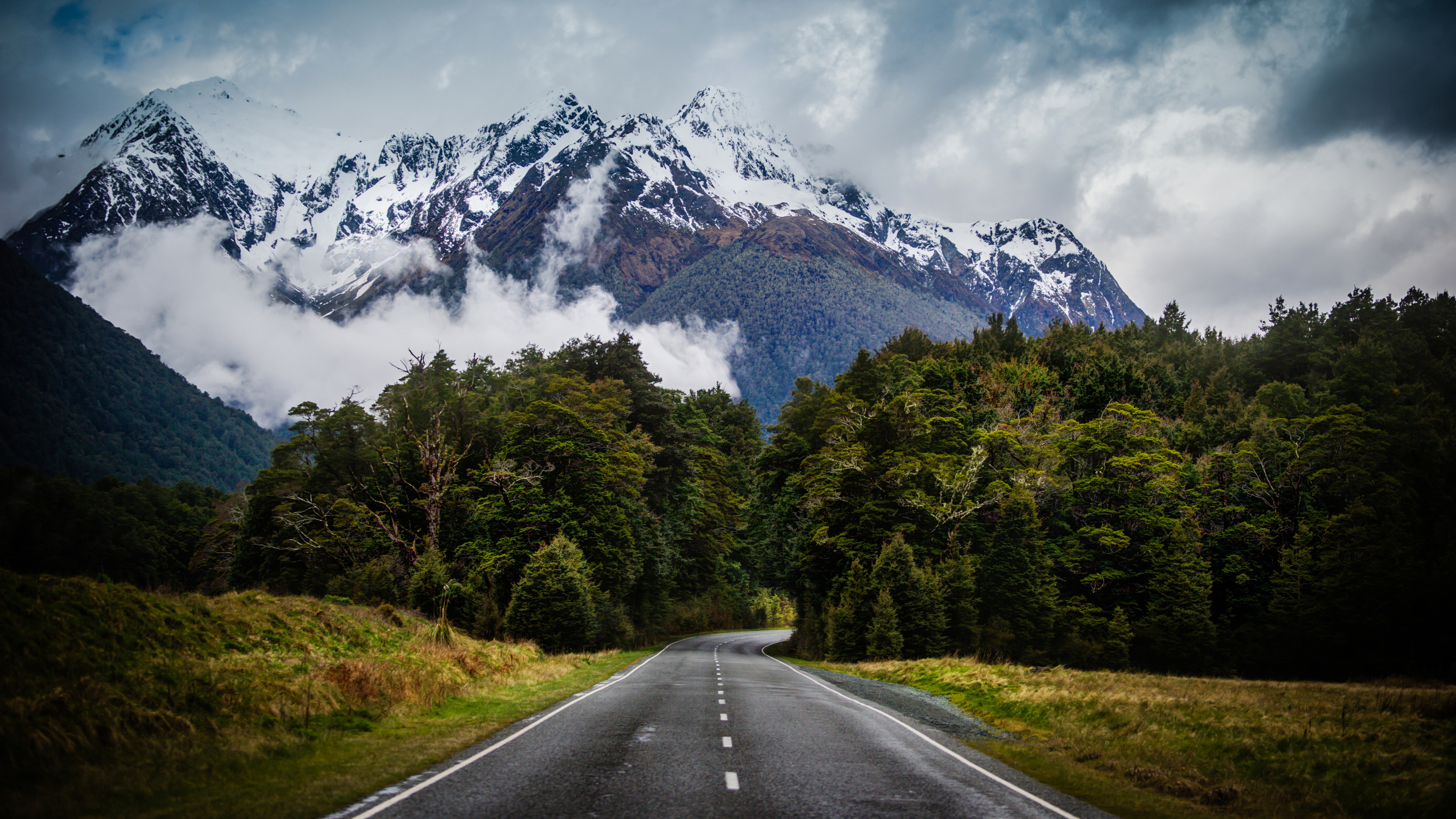 - Photography Landscape New Zealand Nature Mountains Road Snow Tree Cloud Computer Wallpaper 4K Wallpaper