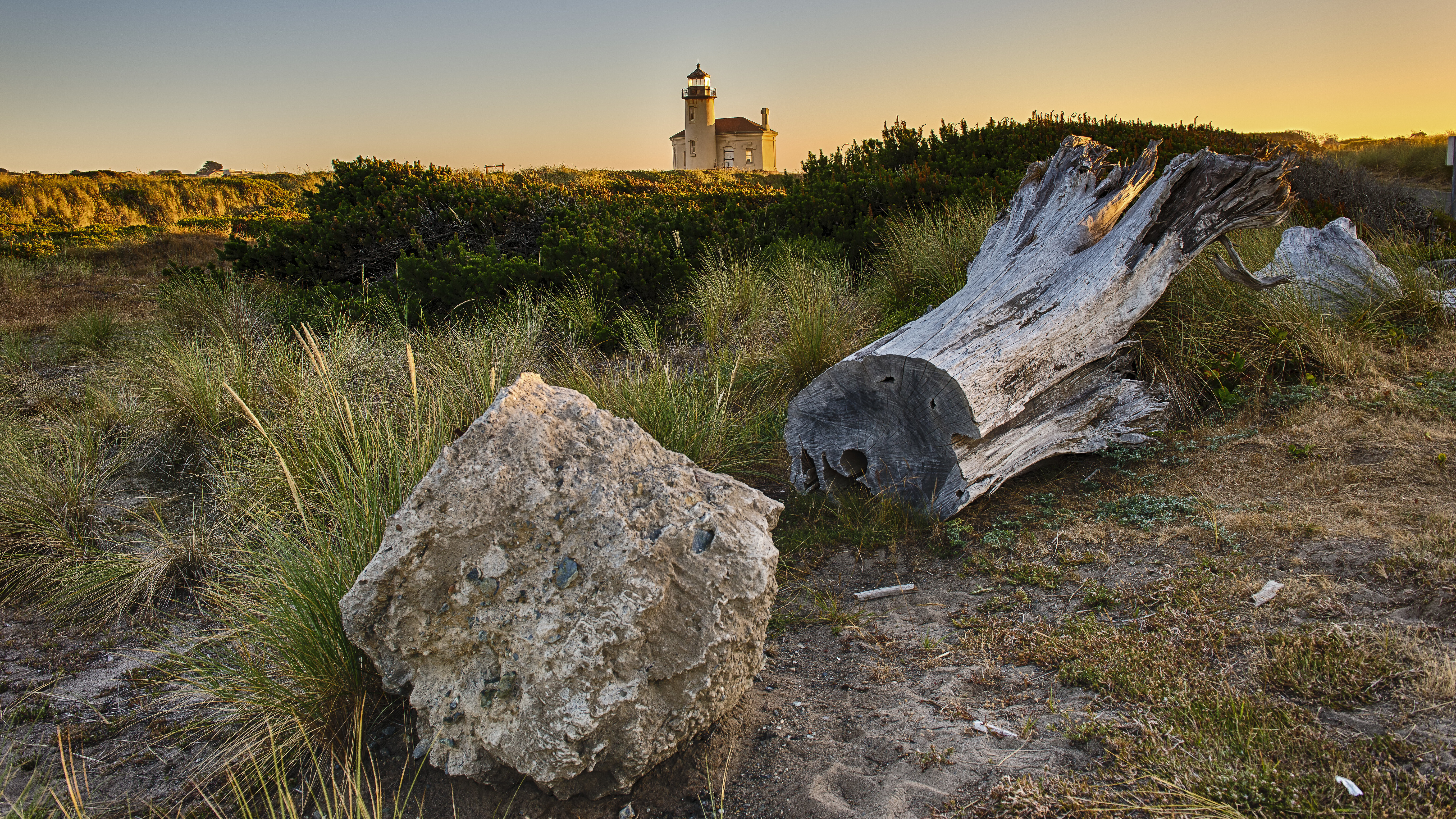 • Photography Lighthouse Grass Landscape Sunset Afterglow Rock Building Ground 4K Wallpaper
