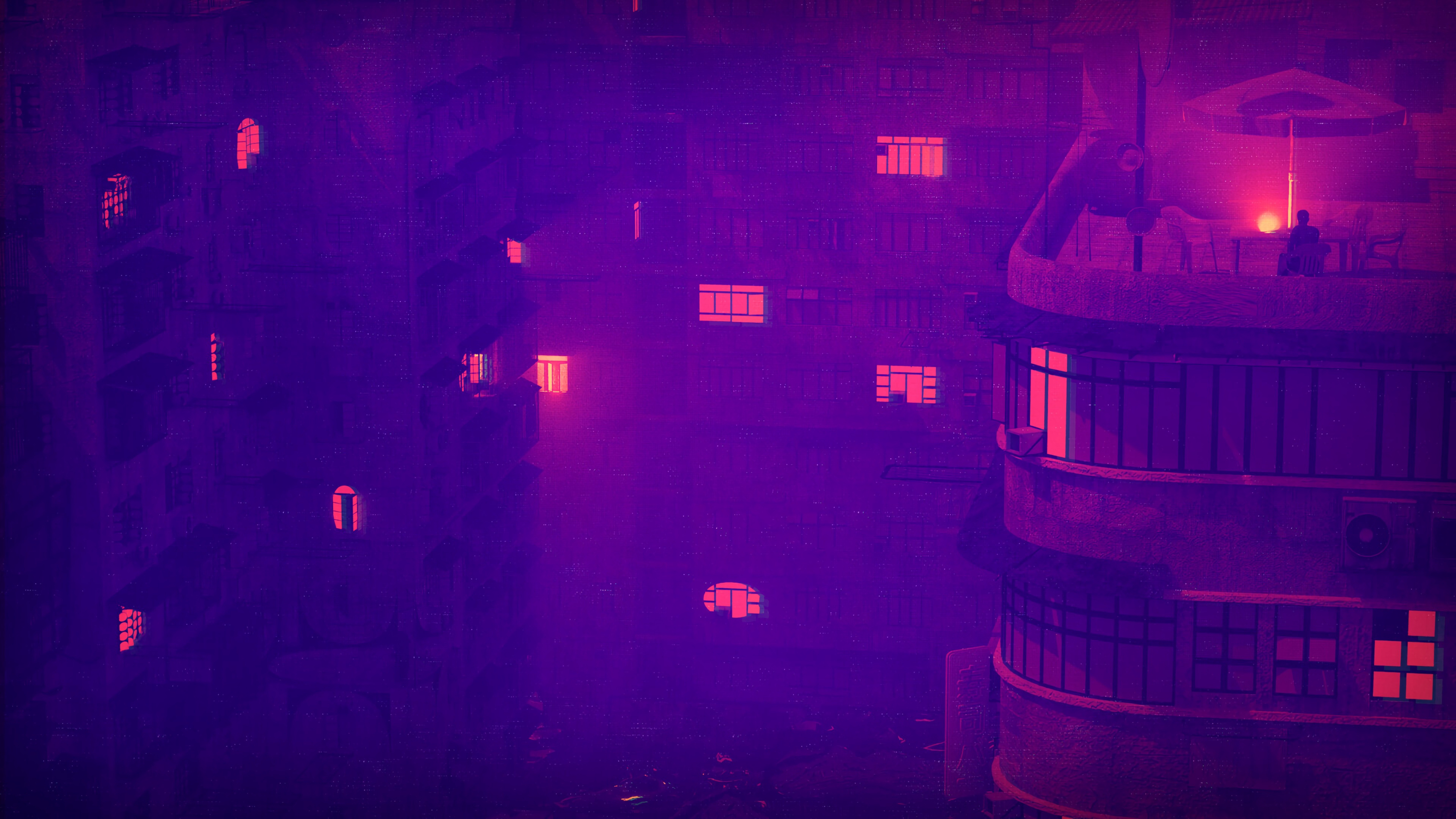 - Purple pink architecture lights low light digital art 4K wallpaper