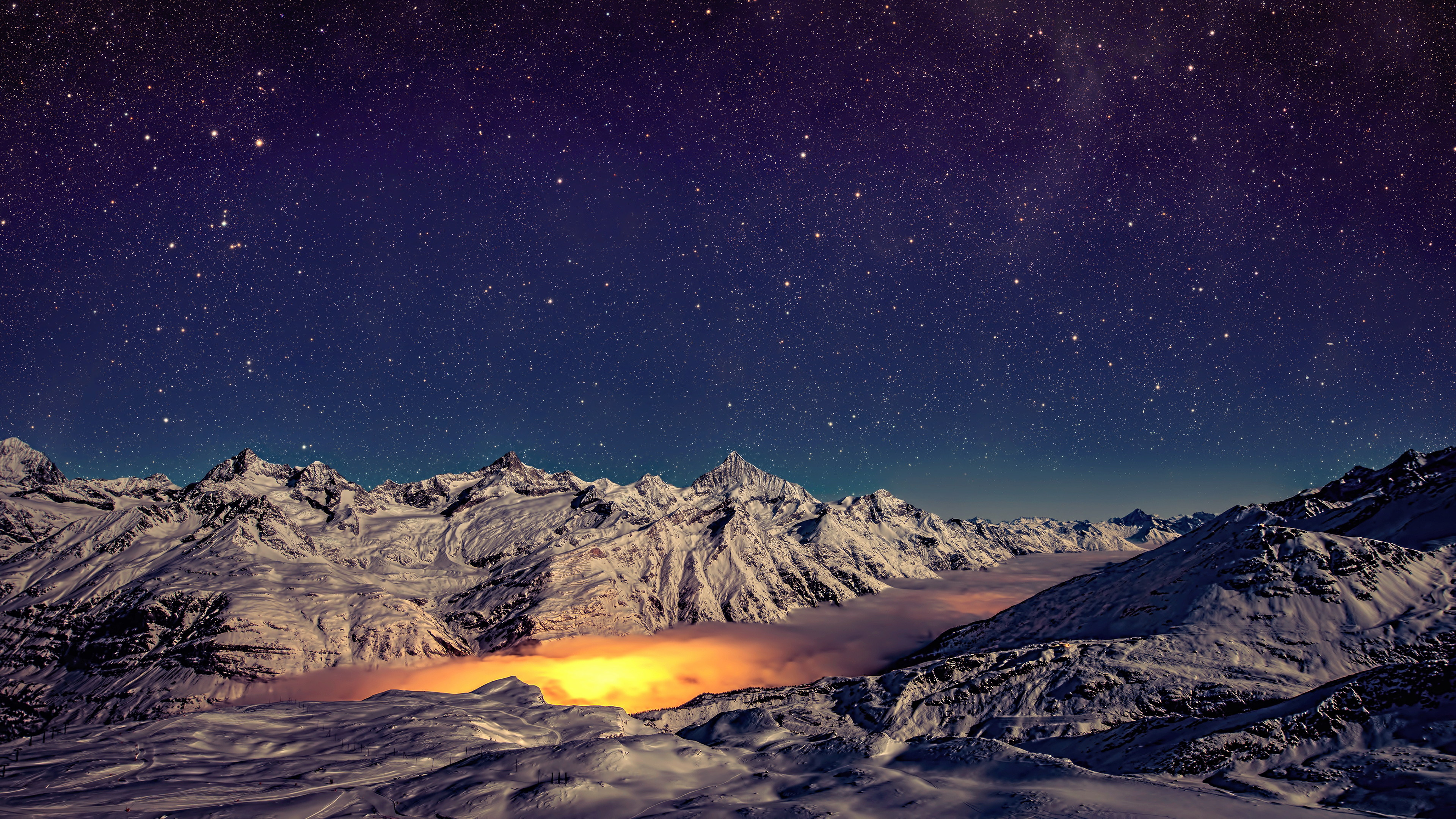 - Home > Landscape Wallpaper >Free download Scenery Nature Mountains Panorama Night Stars Snow Look Misty 4K Wallpaper