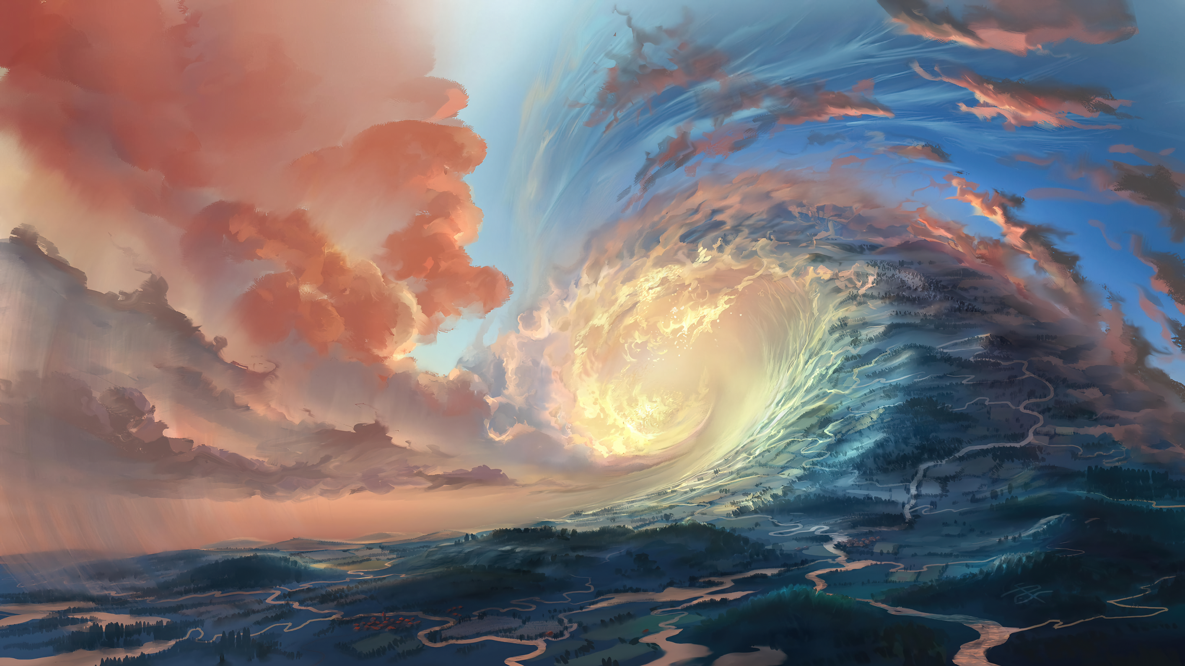 - Home > Landscape Wallpaper >Free download Singularity Clouds Trees Rivers AI Art Twisted Art Landscape Sunshine Nature 4K Wallpaper