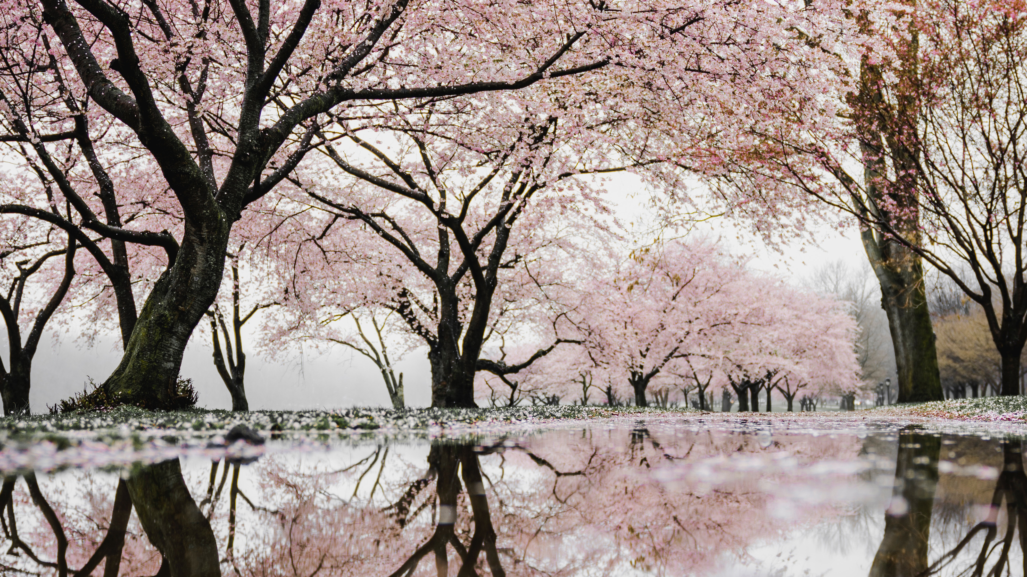 - Home > Landscape Wallpaper >Free download cherry blossom reflection tree flower water nature spring computer wallpaper 4K wallpaper