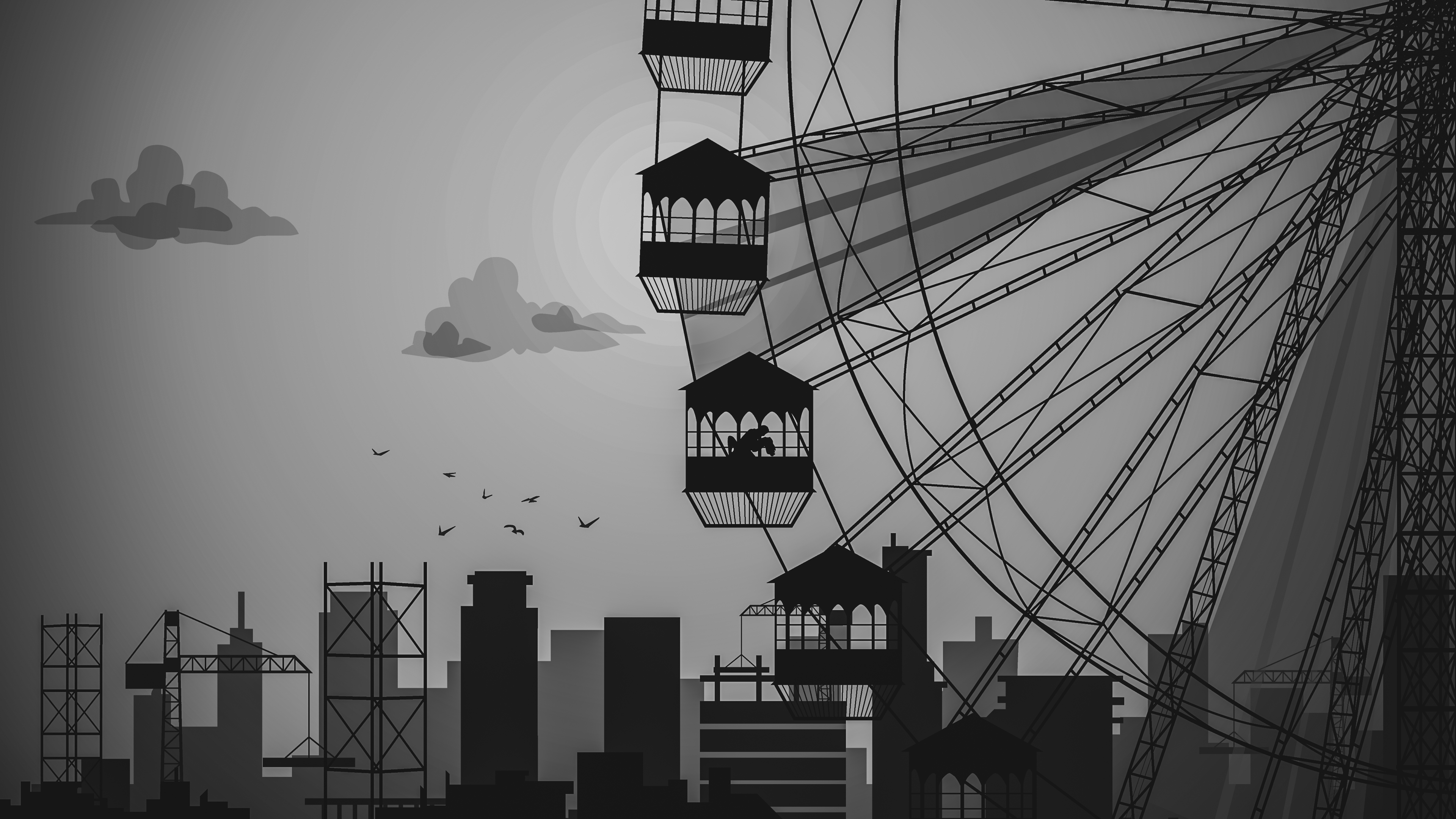 illustration city sun silhouette monochrome ferris wheel cityscape coupe sky birds animals computer wallpaper 4K wallpaper