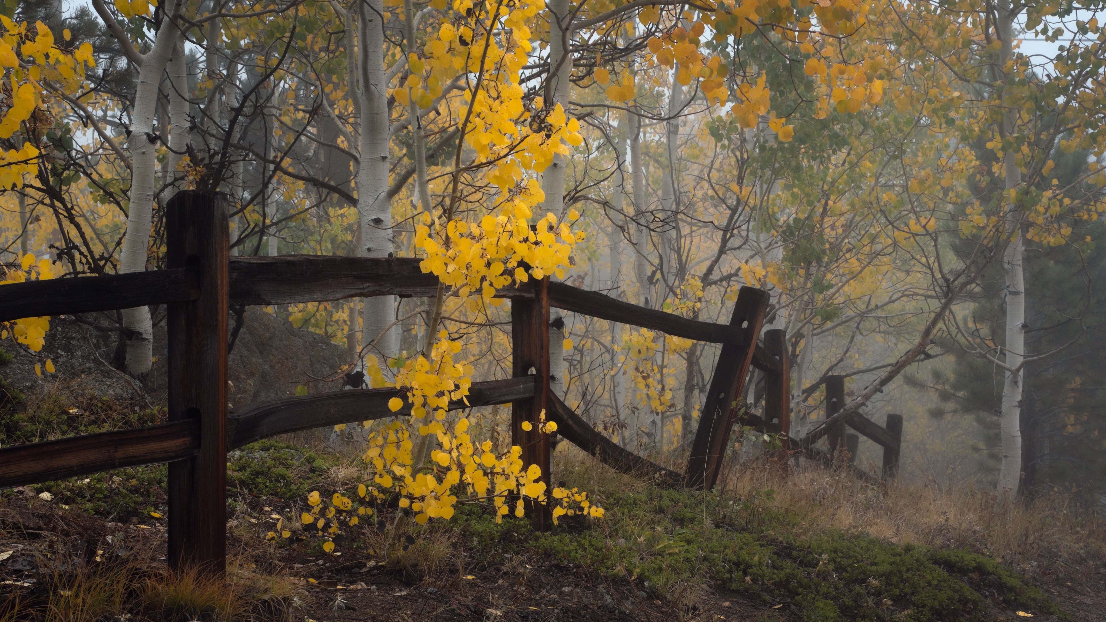 nature outdoor plants fence autumn tree branches leaves 4K wallpaper