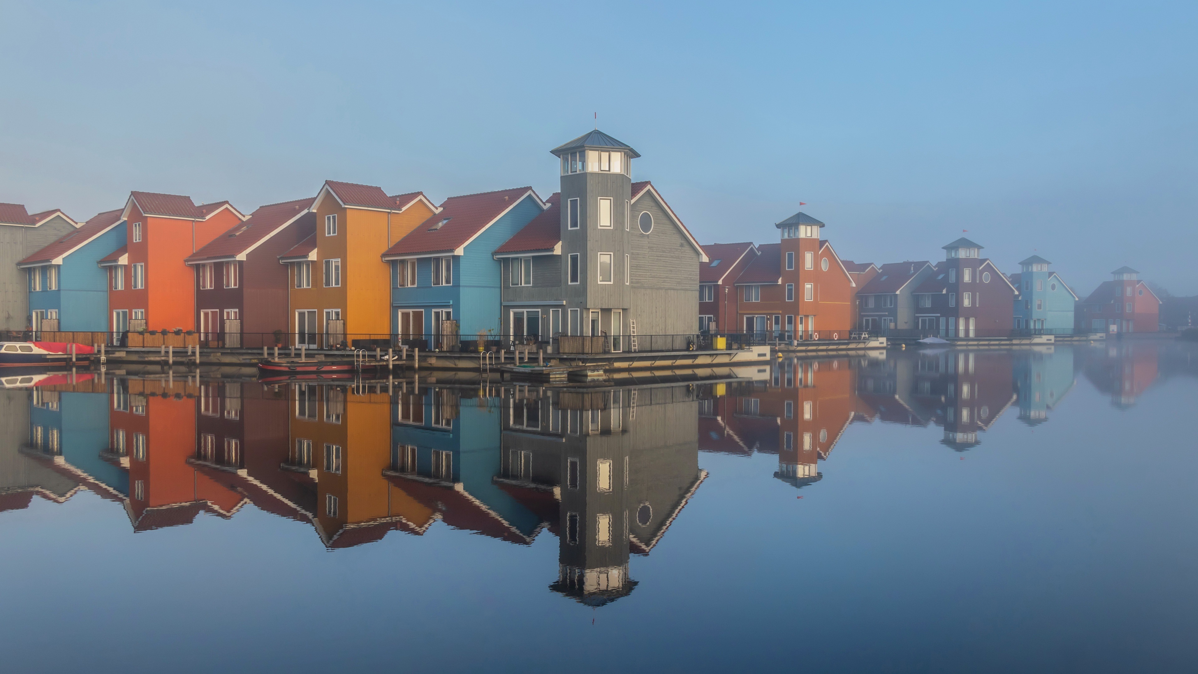 - Home > Landscape Wallpaper >Free download outdoor house construction mist water reflection boat colorful computer wallpaper 4K wallpaper